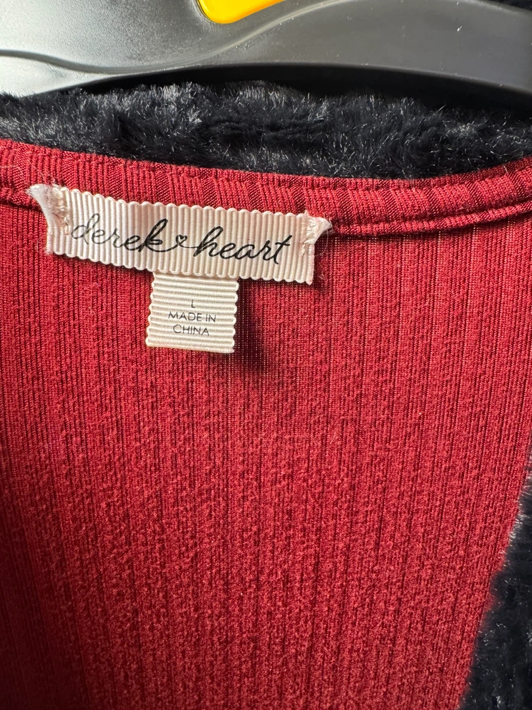 Derek Heart Burgundy Ribbed Faux Fur Collar Dress - Size L