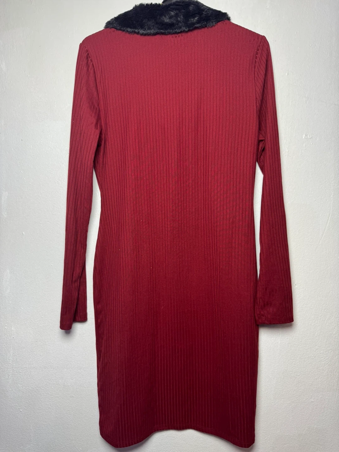 Derek Heart Burgundy Ribbed Faux Fur Collar Dress - Size L