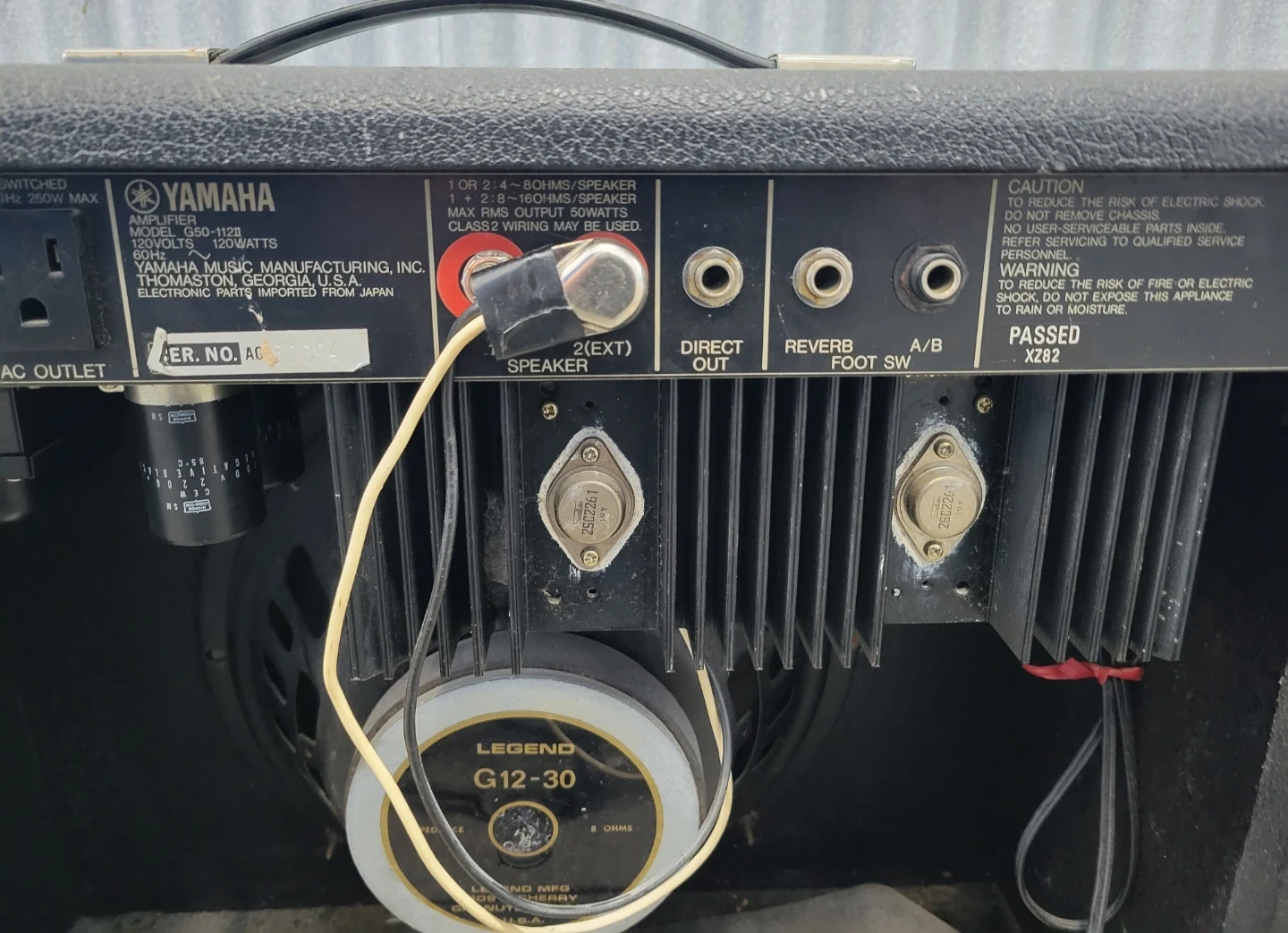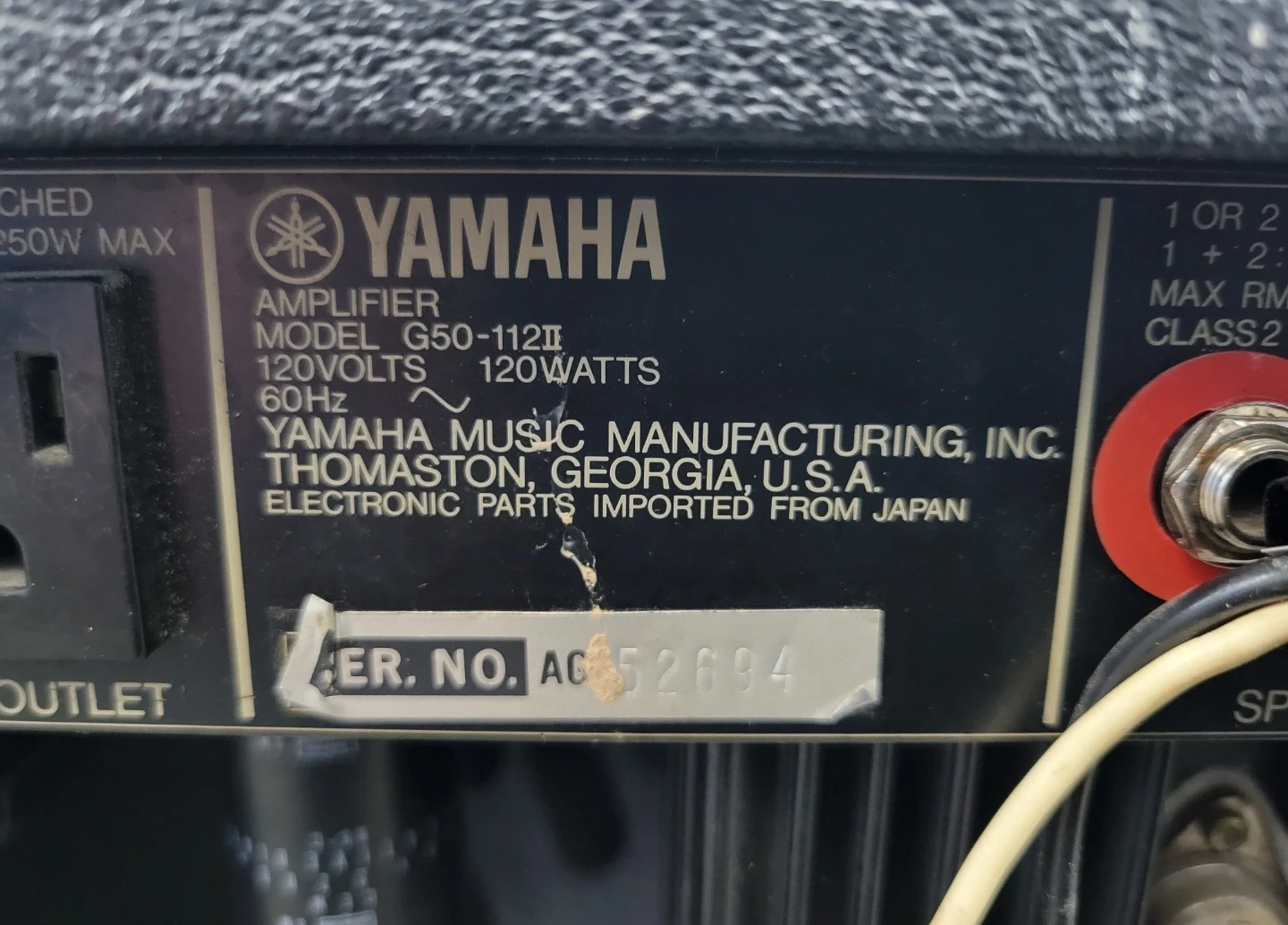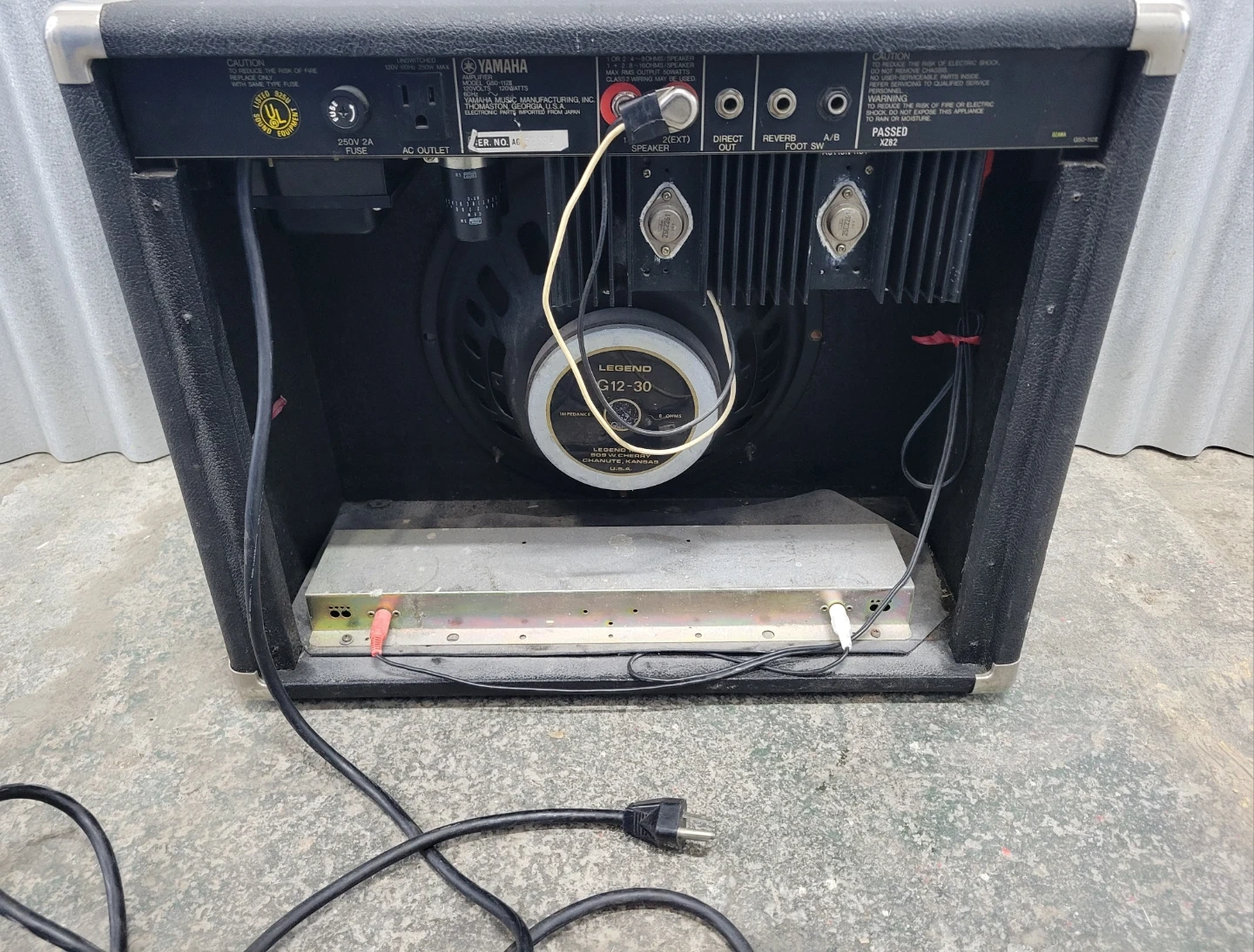 Selling a Yamaha G50-112II guitar amplifier from the late 70s/early 80s. It's in used condition with some wear, but still works great! The speaker is a Legend G12-30. Perfect for practice or small gigs. It known for its powerful, clean sound that stays clear even at high volumes,