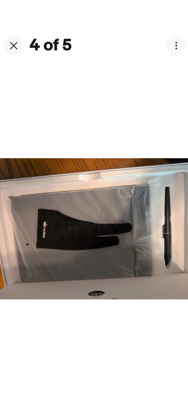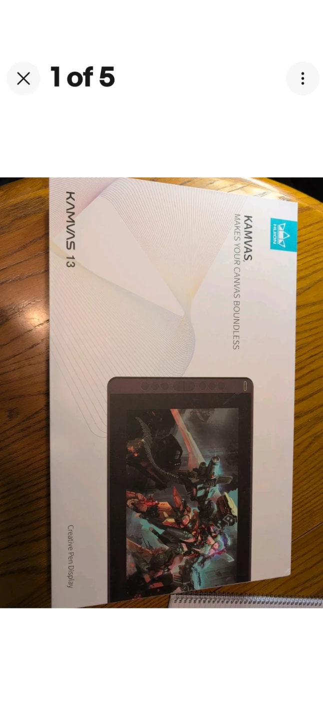 This is a Huion Kamvas 13 creative pen display. It's a drawing tablet with a screen. It comes with a pen and a drawing glove and tablet holder.