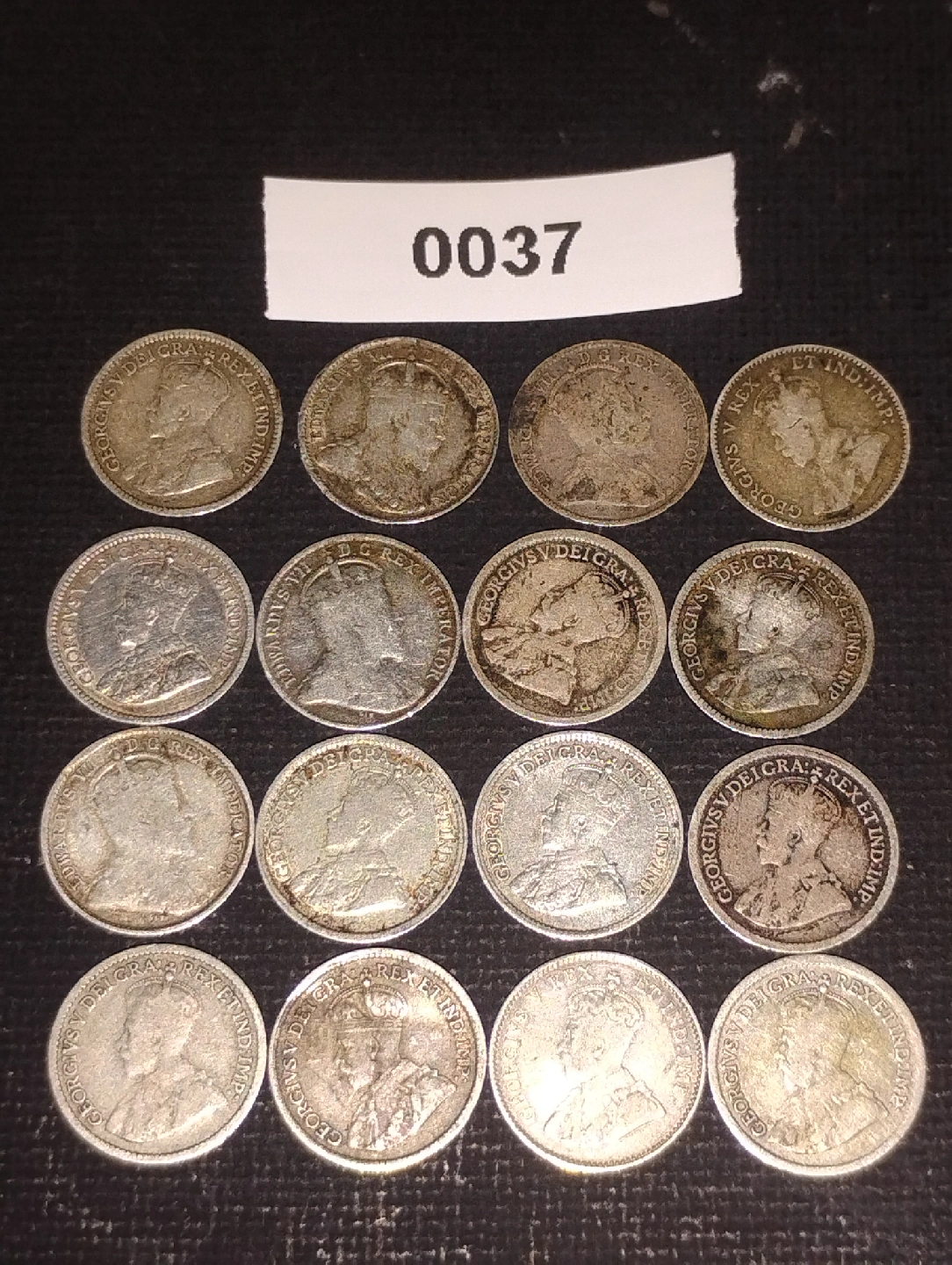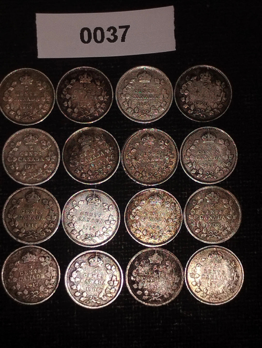 16 pieces Vintage Silver Canadian 5 Cent Coins - 1915-1920