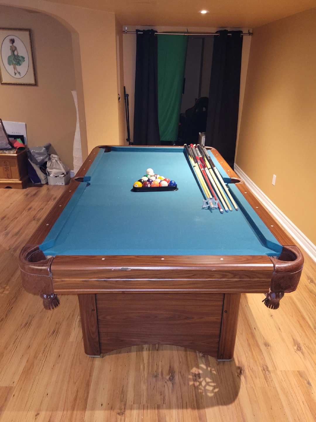 Includes the table, a full set of pool balls, and several cues. Everything you need to start playing right away. It's in great shape and ready for a new home!