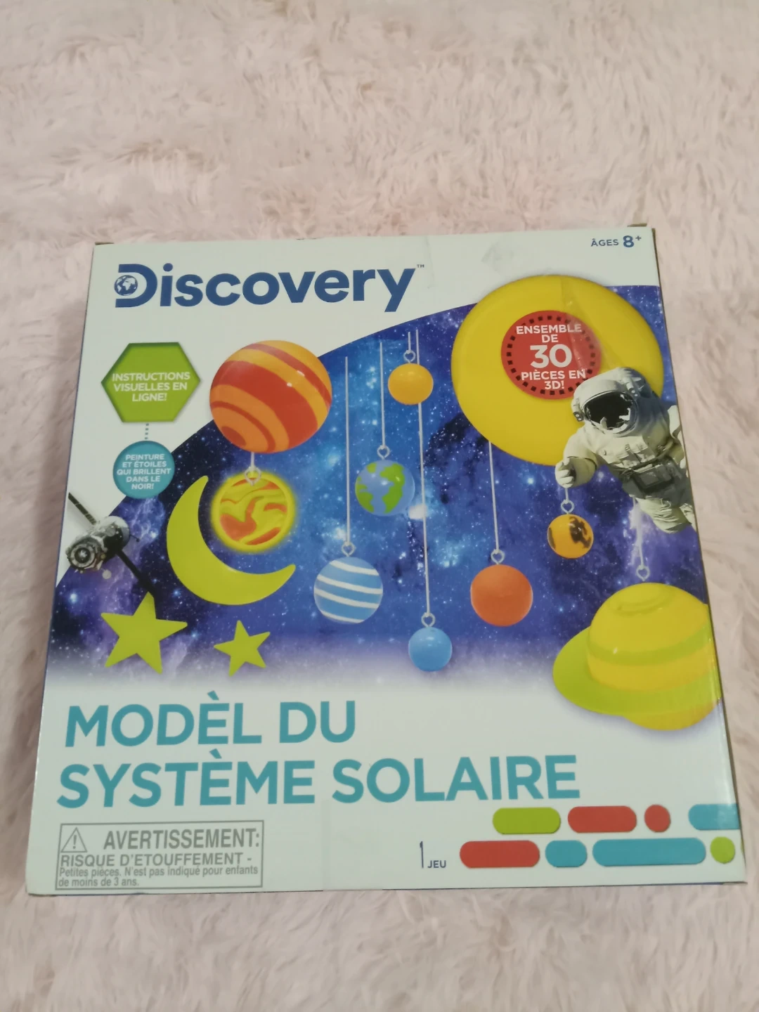 Selling a Discovery Solar System 3D model set, perfect for kids aged 8 and up! This set has 30 pieces to build your own solar system model. Visual instructions are included to help guide you through the process