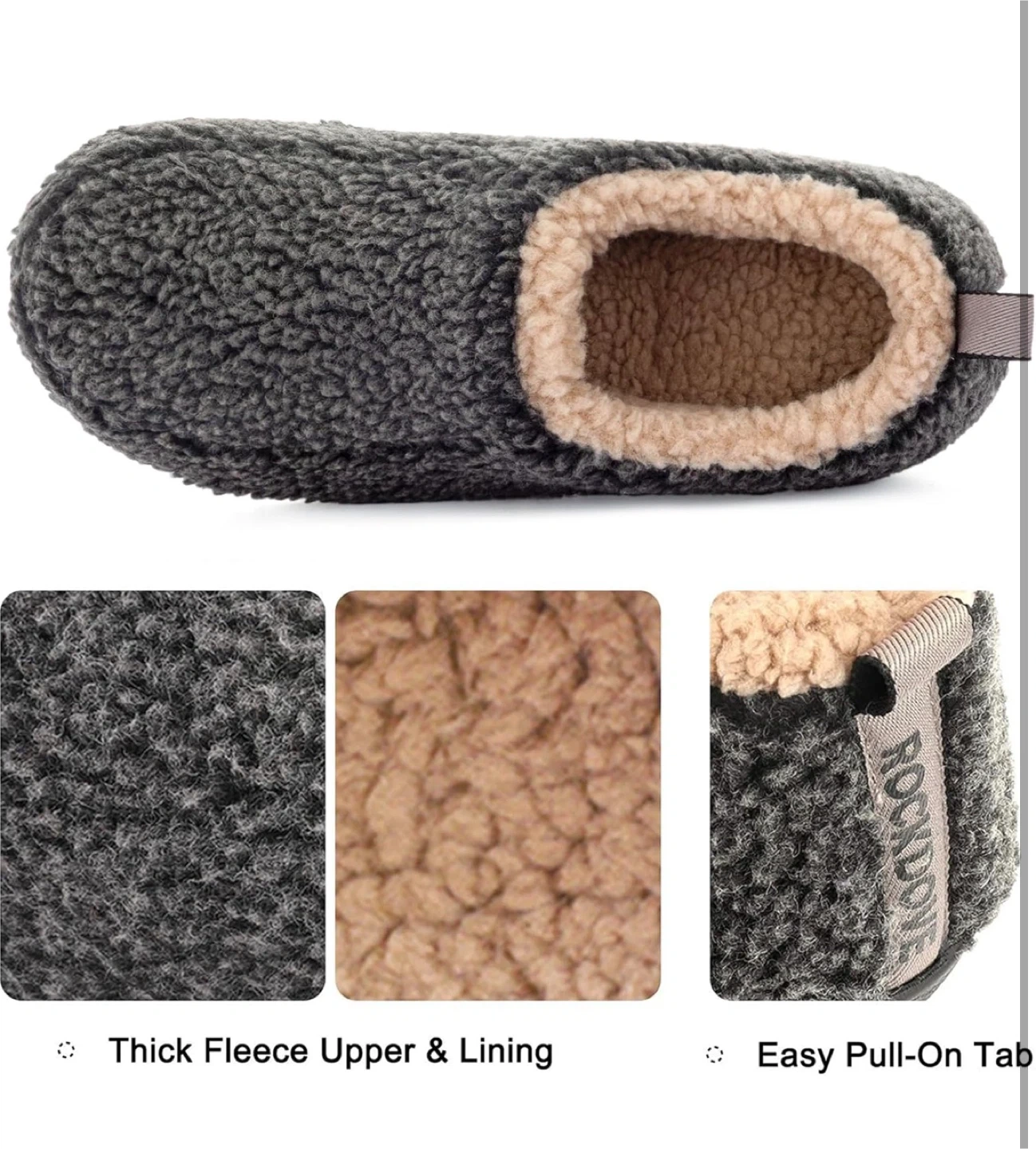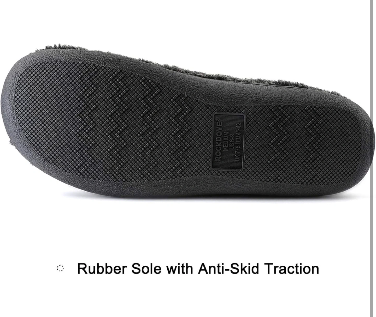 These RockDove slippers feature a thick fleece upper and lining for ultimate comfort. They have a memory foam insole that conforms to your foot's shape, reducing stress. The rubber sole offers anti-skid traction for safety. Perfect for relaxing around the house!