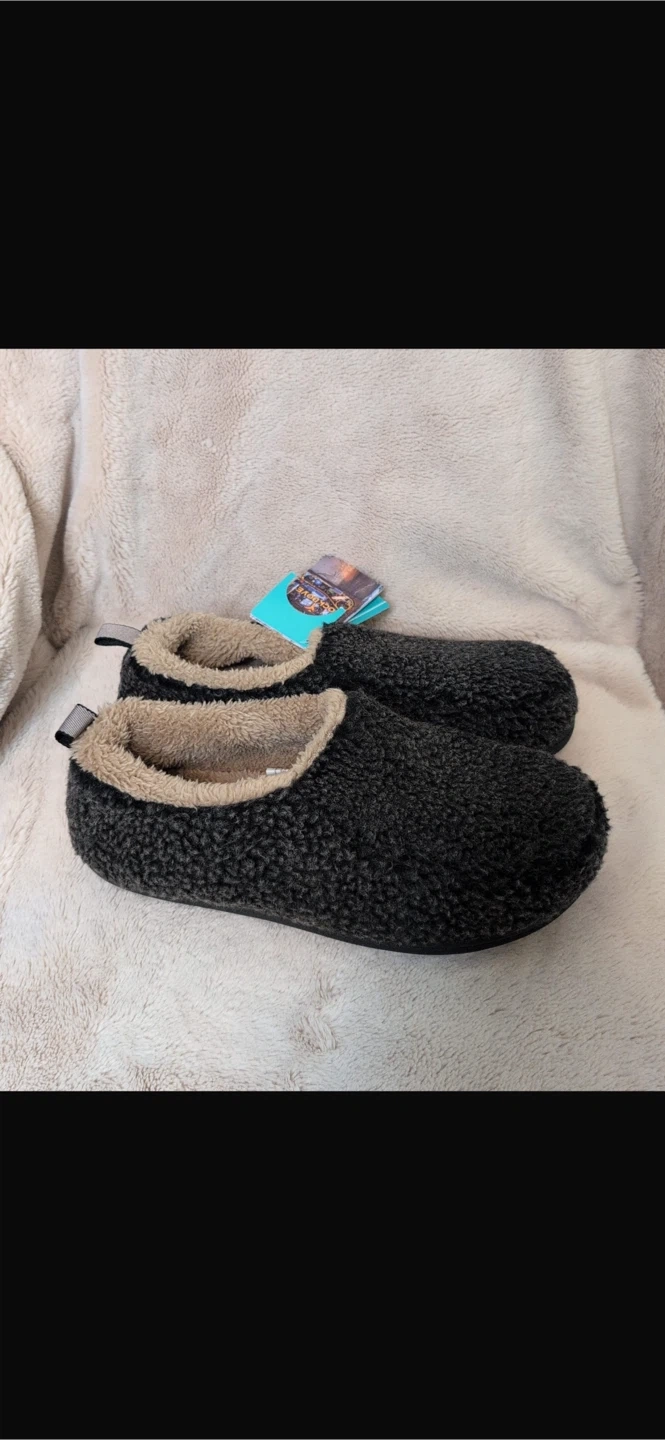 TOASTY WARM - Covered in plush sherpa fleece from inside to outside, this slipper will wrap your feet in a cocoon of warmth so they'll never feel cold. No animal parts are used in making this product.