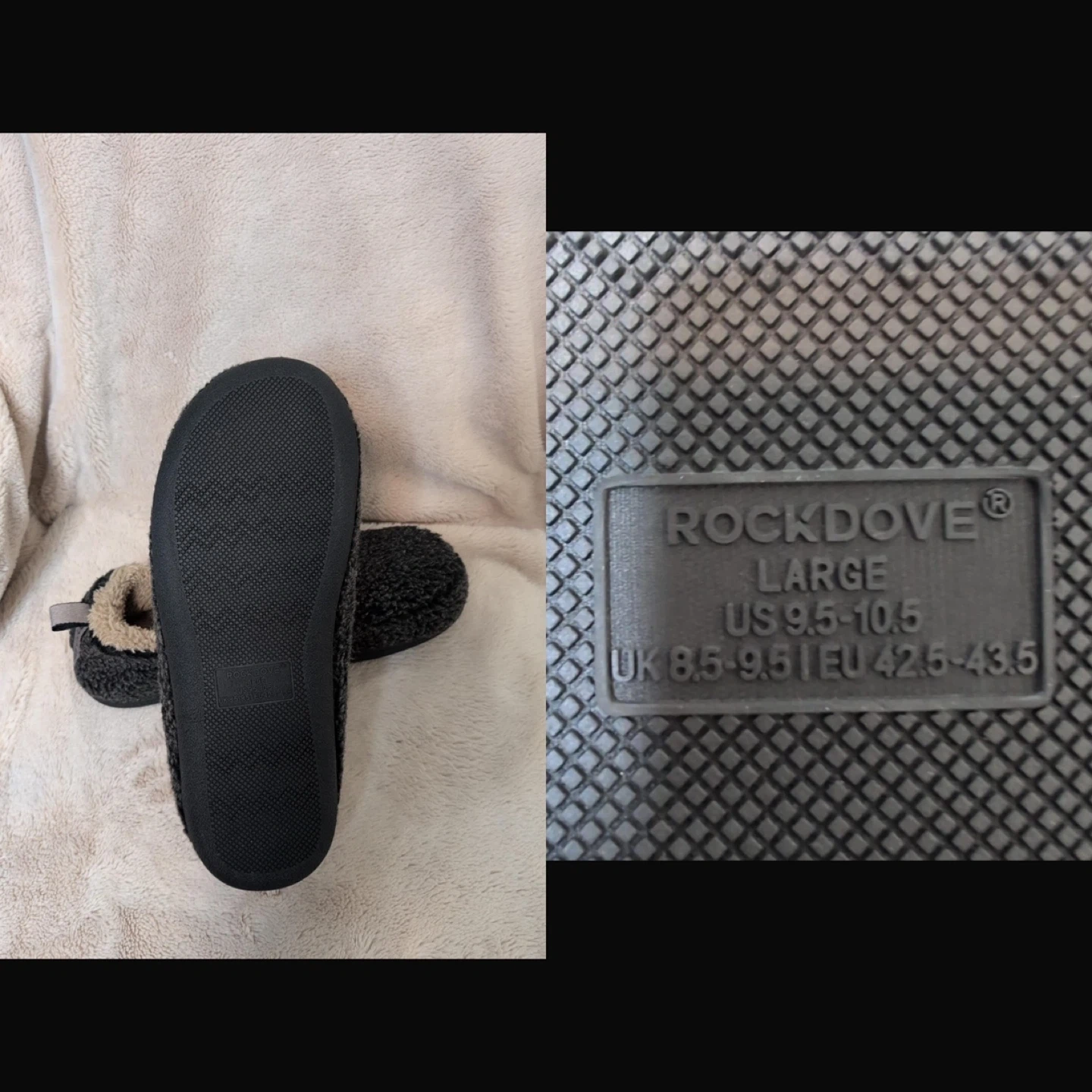 These RockDove slippers feature a thick fleece upper and lining for ultimate comfort. They have a memory foam insole that conforms to your foot's shape, reducing stress. The rubber sole offers anti-skid traction for safety. Perfect for relaxing around the house!