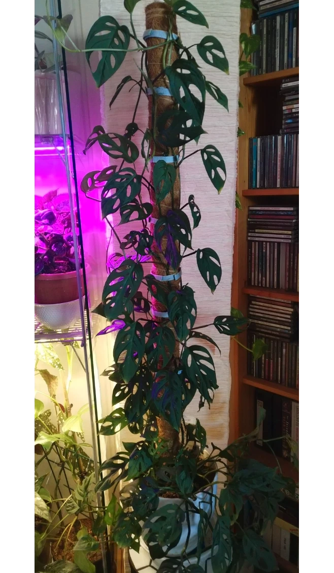 Healthy, lushy, thriving in good soil in a white plastic container w/ drain.