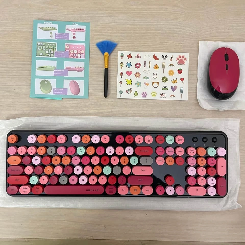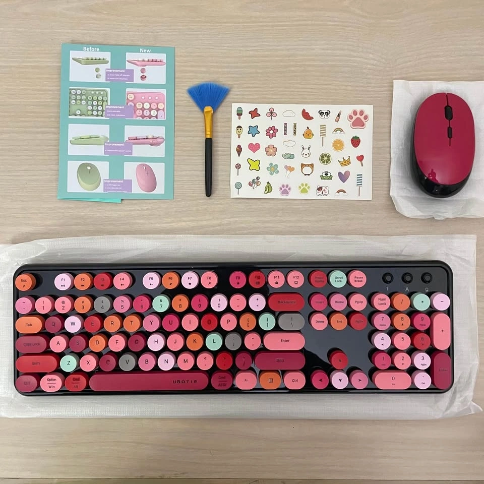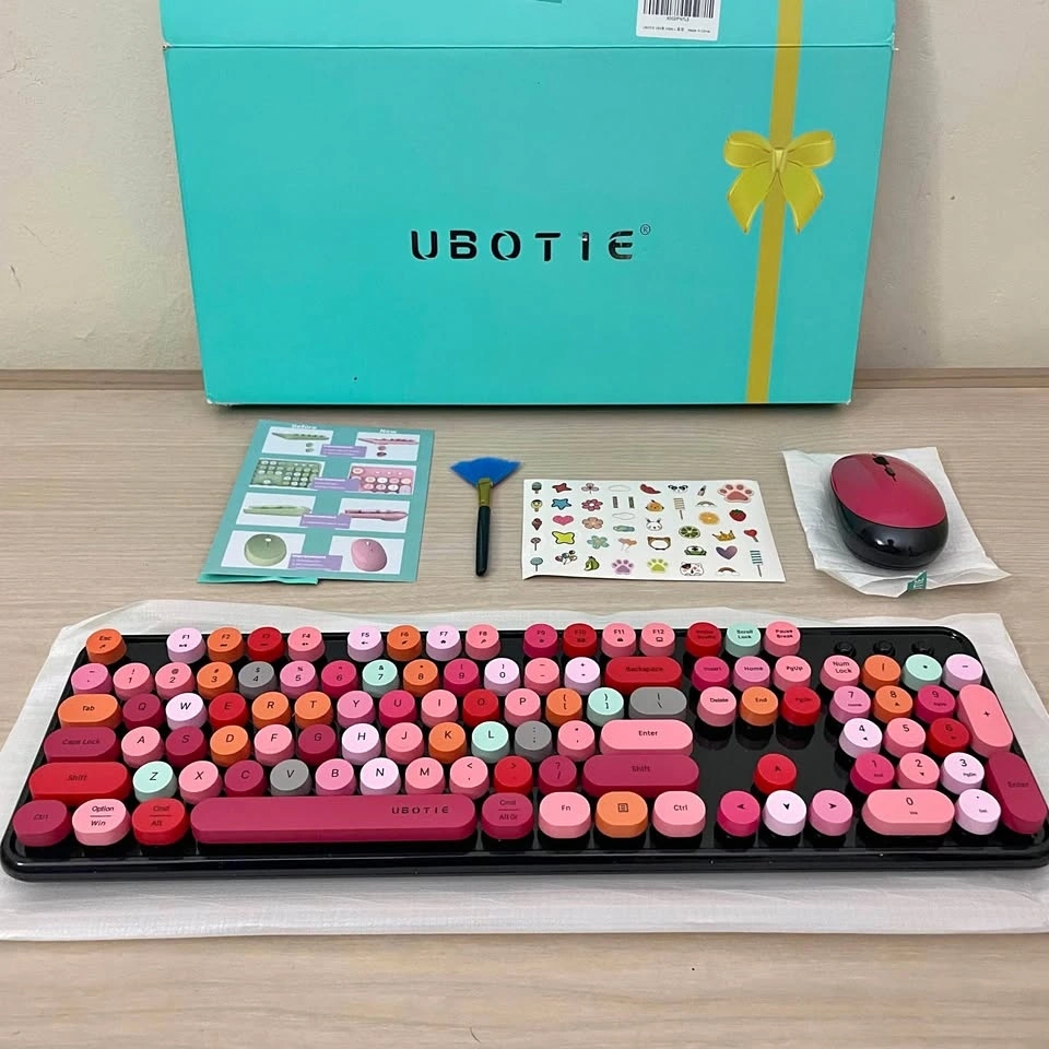 UBOTIE Wireless Keyboard & Mouse Combo | Colorful Typewriter Key