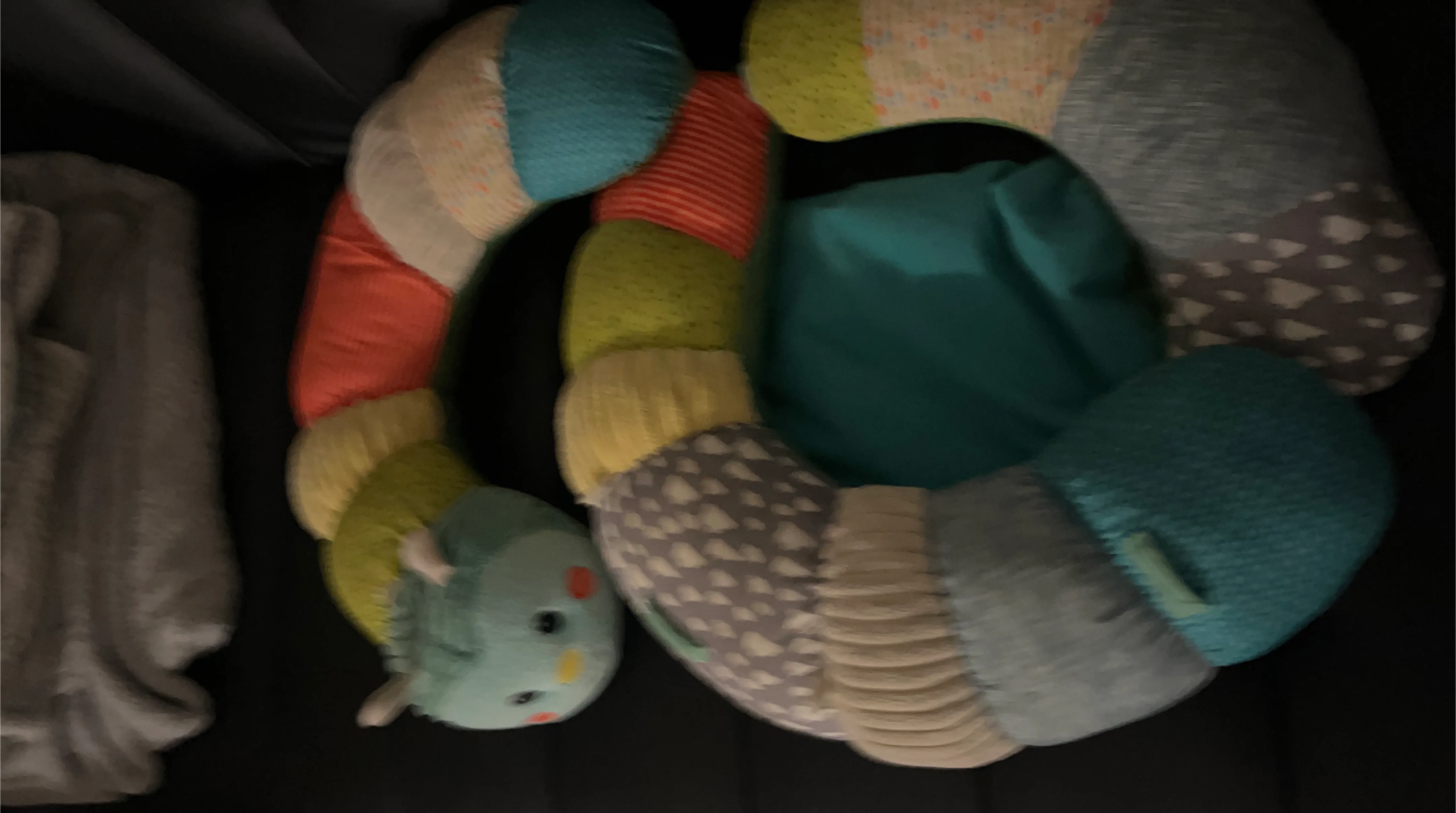 This is a colourful Infantino tummy time pillow. It has a soft, plush head and a supportive pillow to help your little one practice tummy time. The pillow is in good condition and ready for a new home!