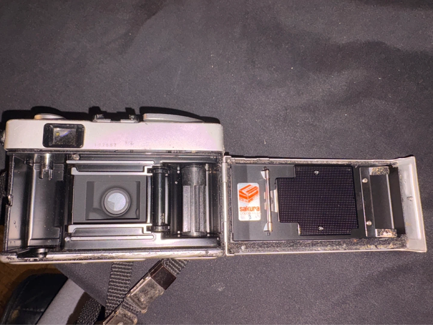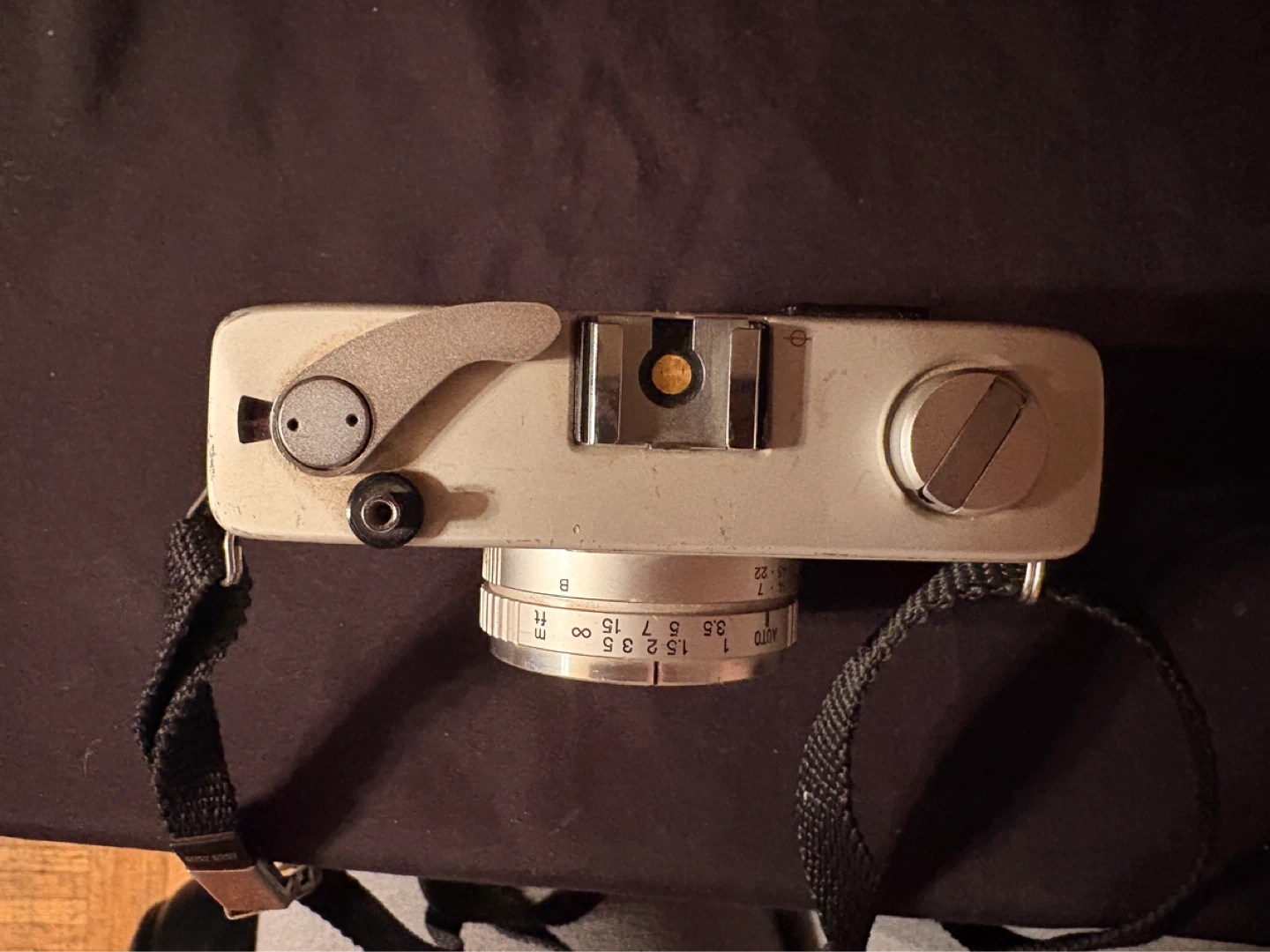 Classic Konica C35 Automatic camera with a Hexanon 38mm 1:2.8 lens. It features a pop-up film advance lever and a hot shoe for accessories. This camera's compact design makes it a breeze to carry around.