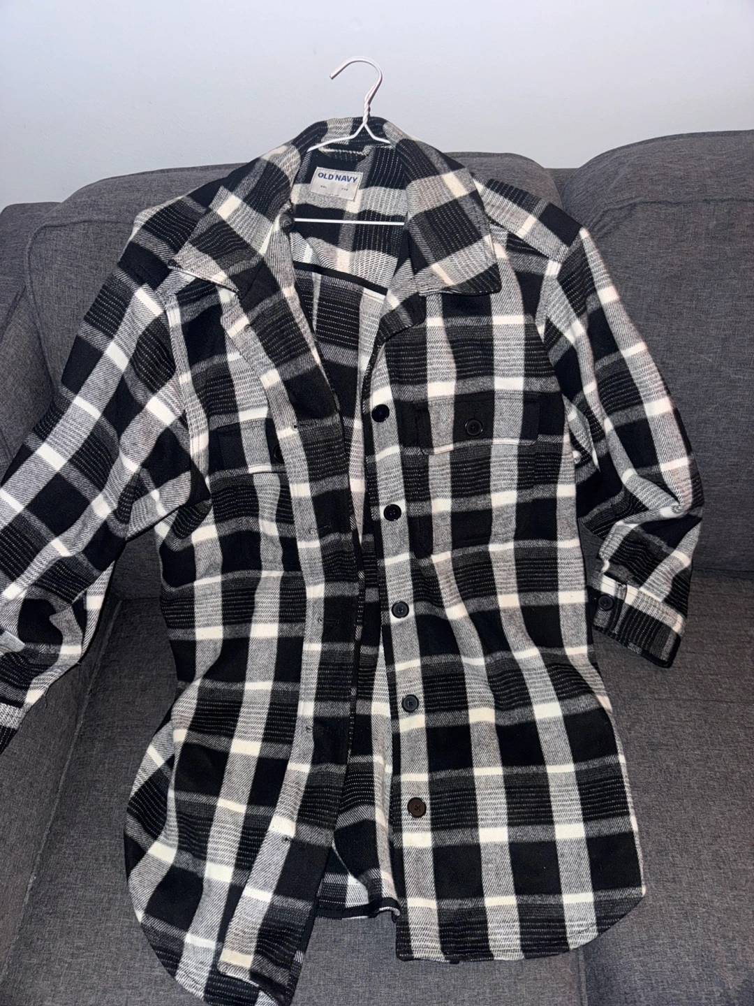 Black and white plaid flannel. Long sleeves. Button-up. Quite thick. Size XXL. Super warm! Great condition only worn a handful of times