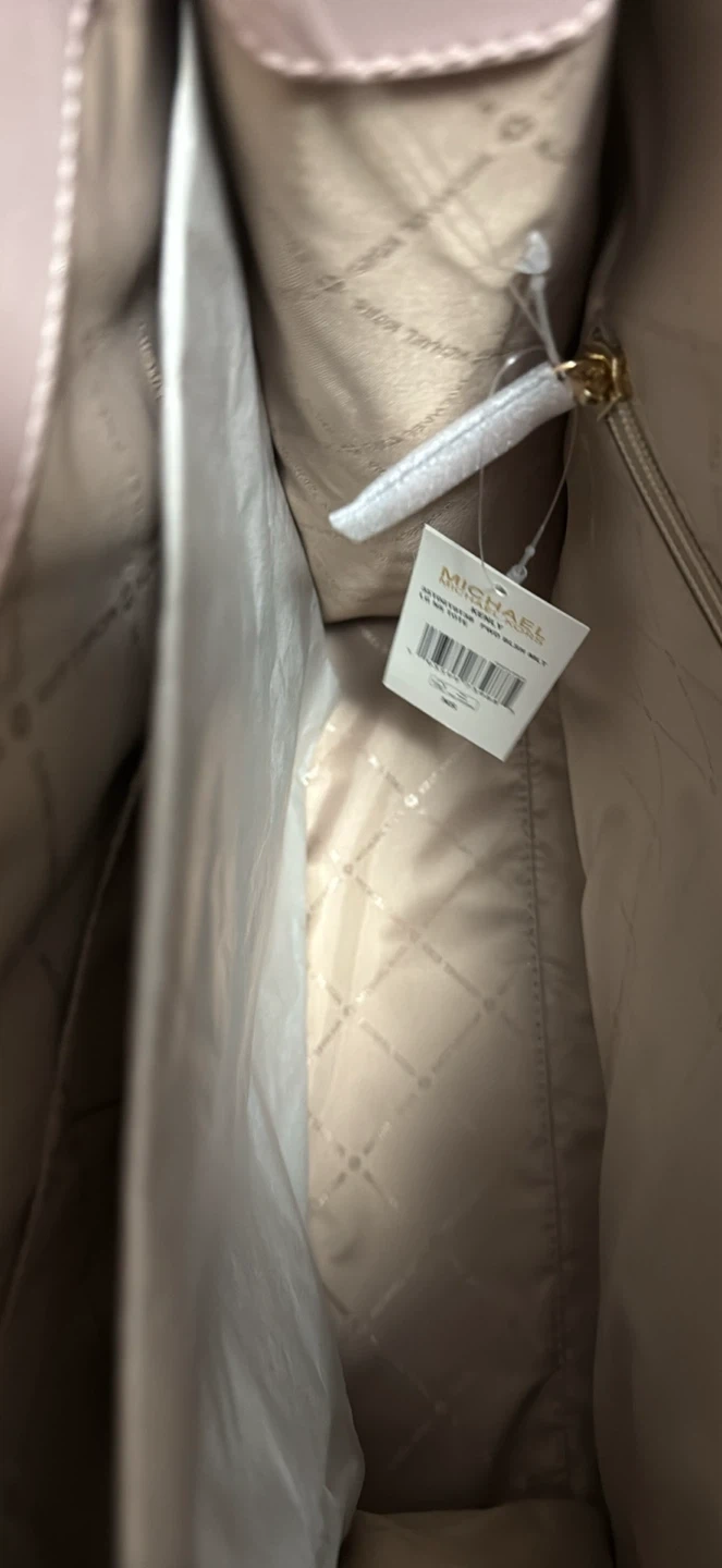 This is a brand new Michael Kors convertible tote bag! It is a cream colour with the MK logo pattern and light pink details. It also comes with a shoulder strap.