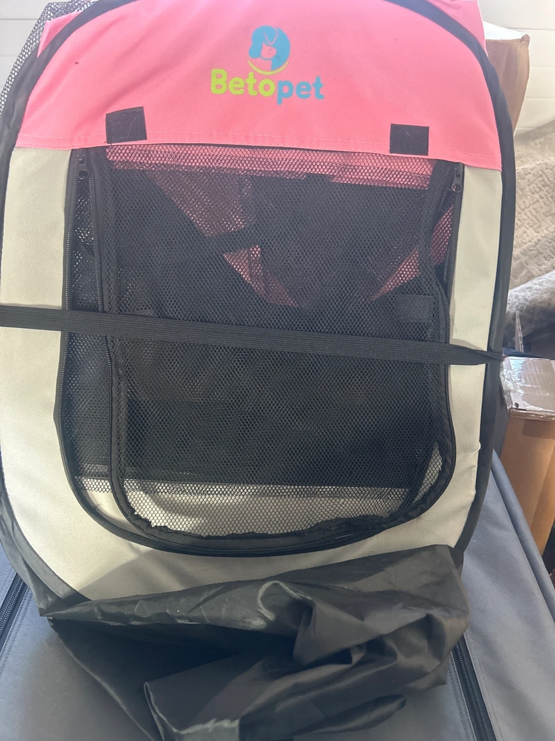 Betopet portable pet playpen. It's a soft-sided enclosure with mesh windows for ventilation. Great for small animals or as a travel carrier!