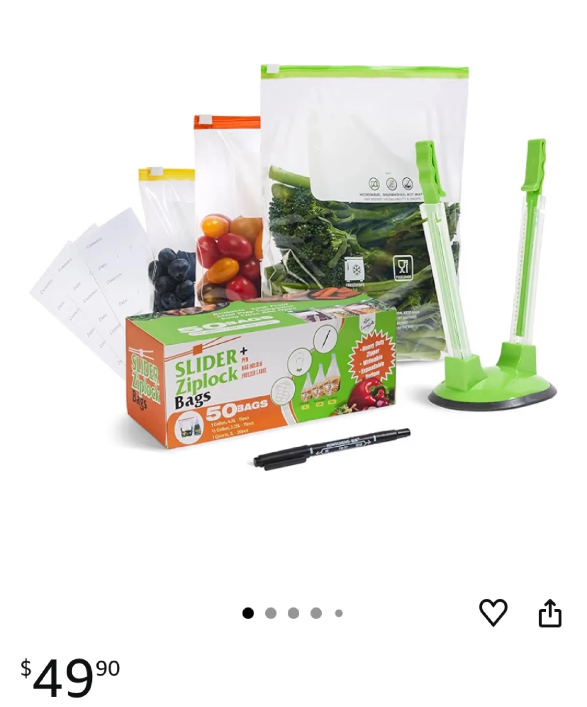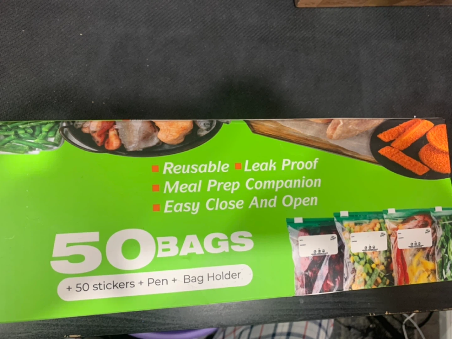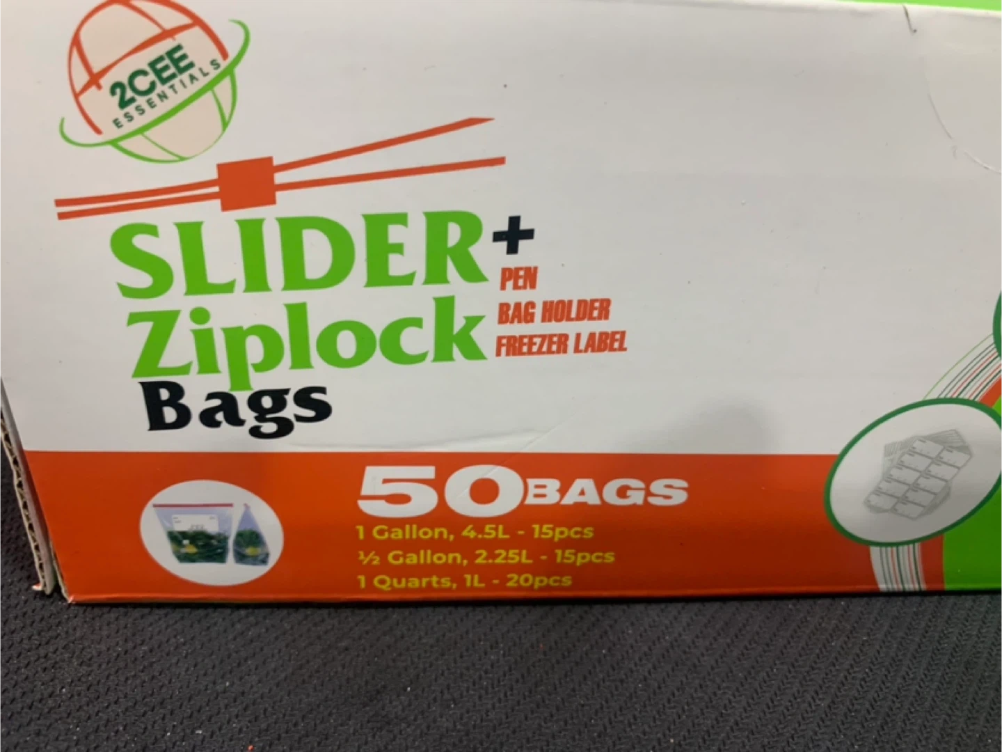 Get organized with these 2CEE Essentials Slider Ziplock Bags! This set includes 50 bags, plus 50 stickers, a pen, and a bag holder. These bags are reusable and leak-proof, making them perfect for meal prep and storage. They're designed with an easy close and open slider, and they're made from food-grade, non-BPA material.