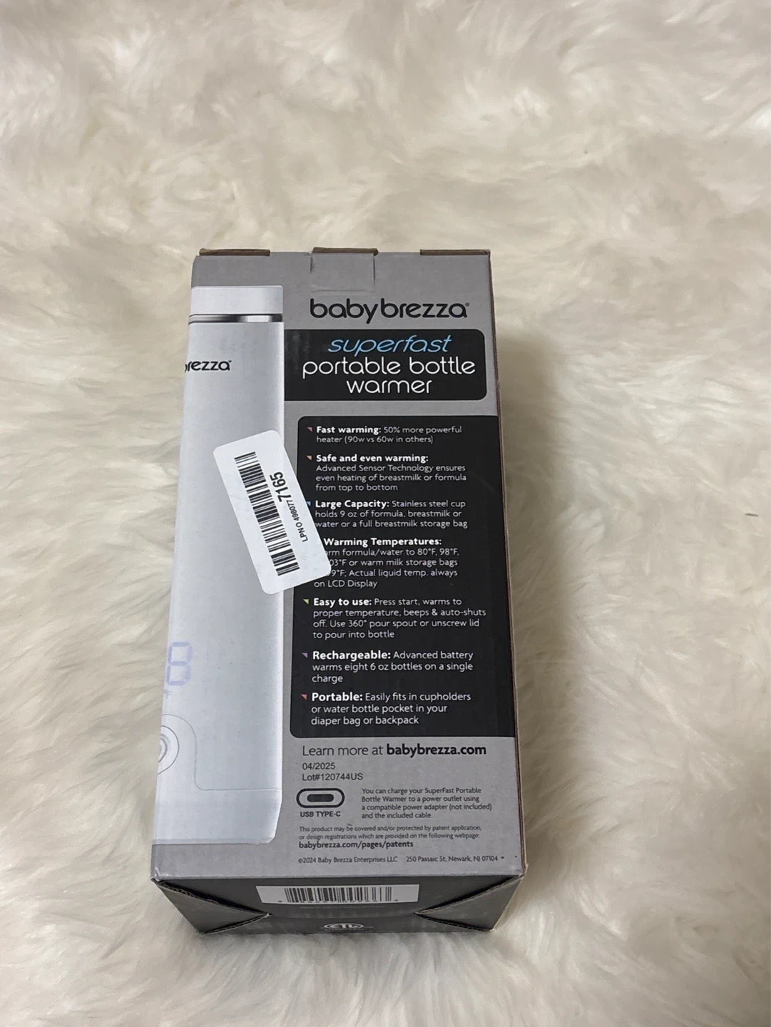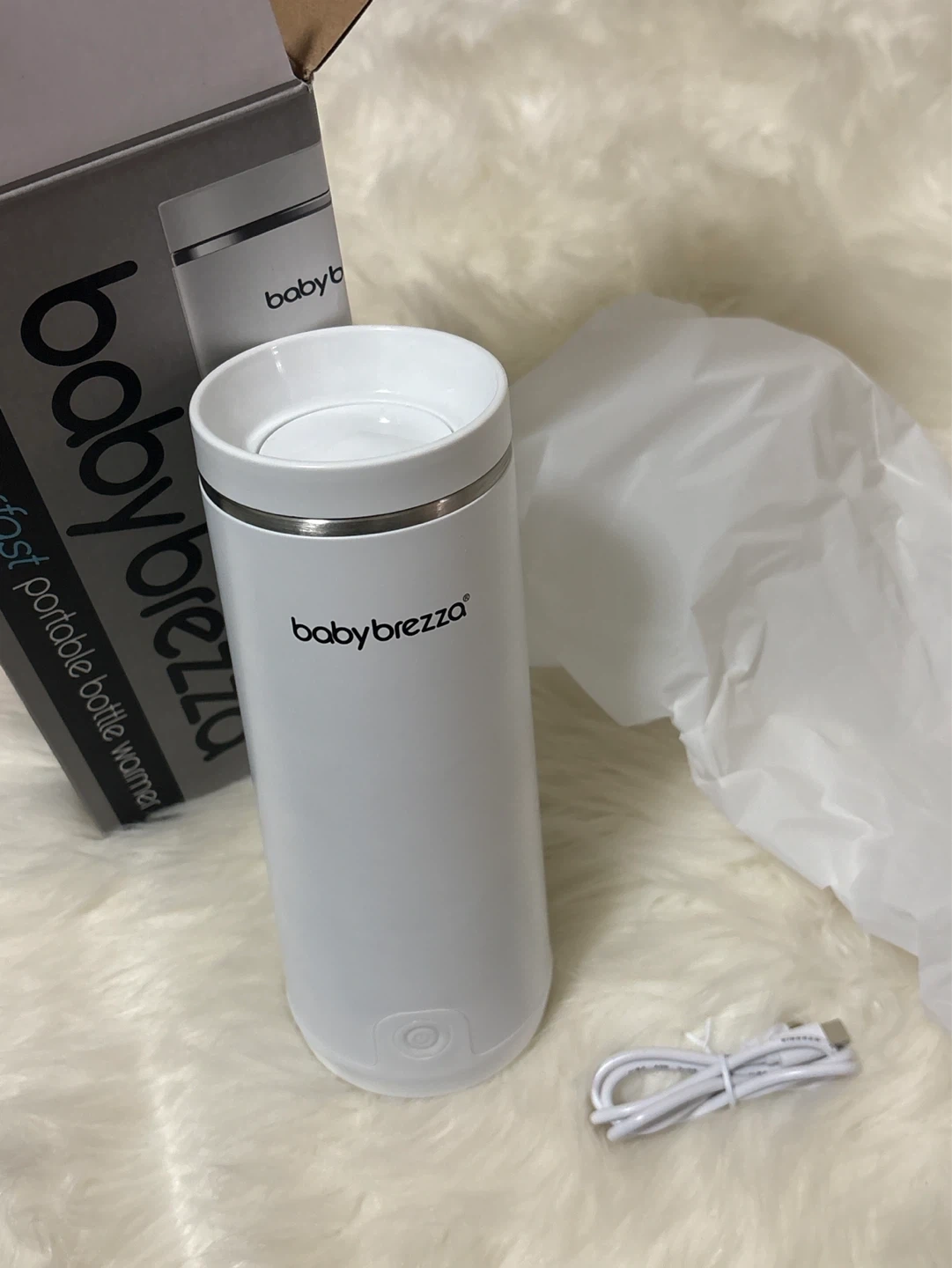 This Baby Brezza Superfast Portable Bottle Warmer is designed for warming bottles on the go. It warms 8 oz in 4 minutes. Features advanced sensor warming and is rechargeable. It fits in cupholders and can warm up to eight 6 oz bottles on a single charge.
