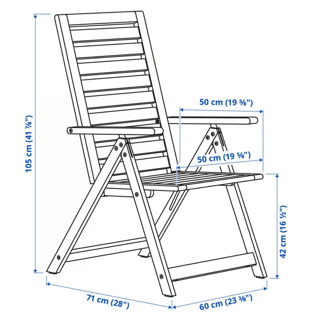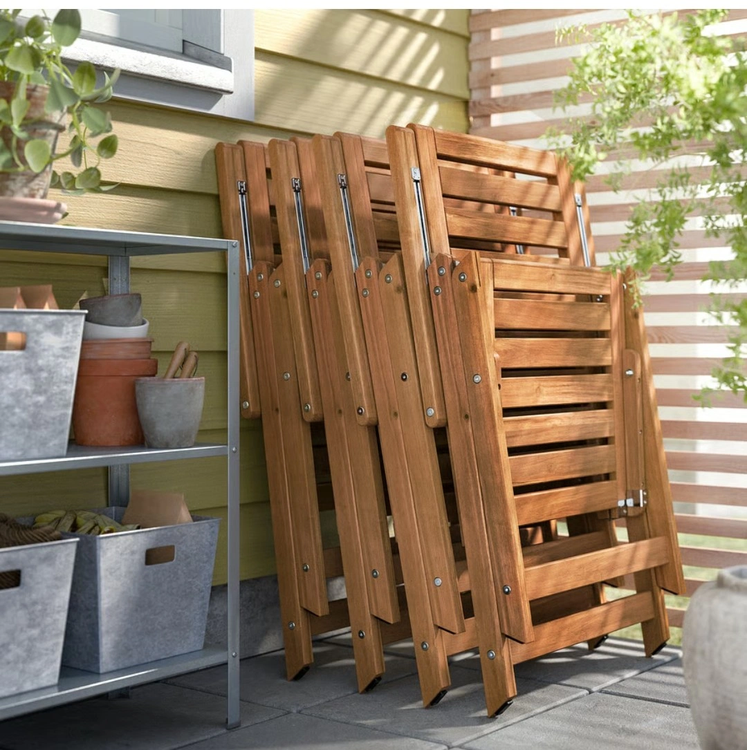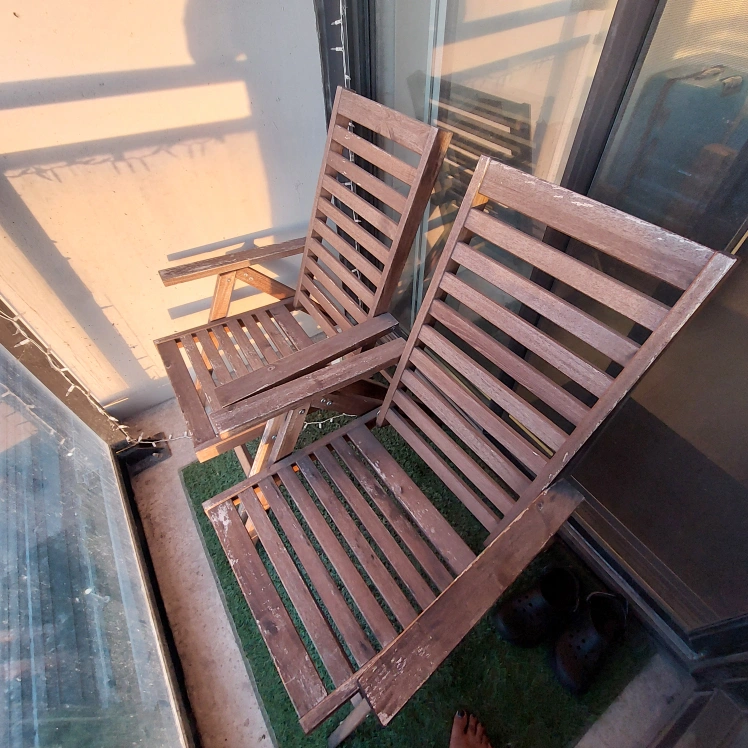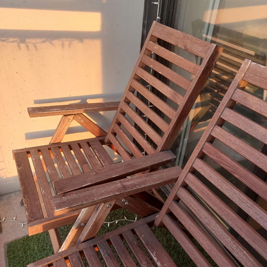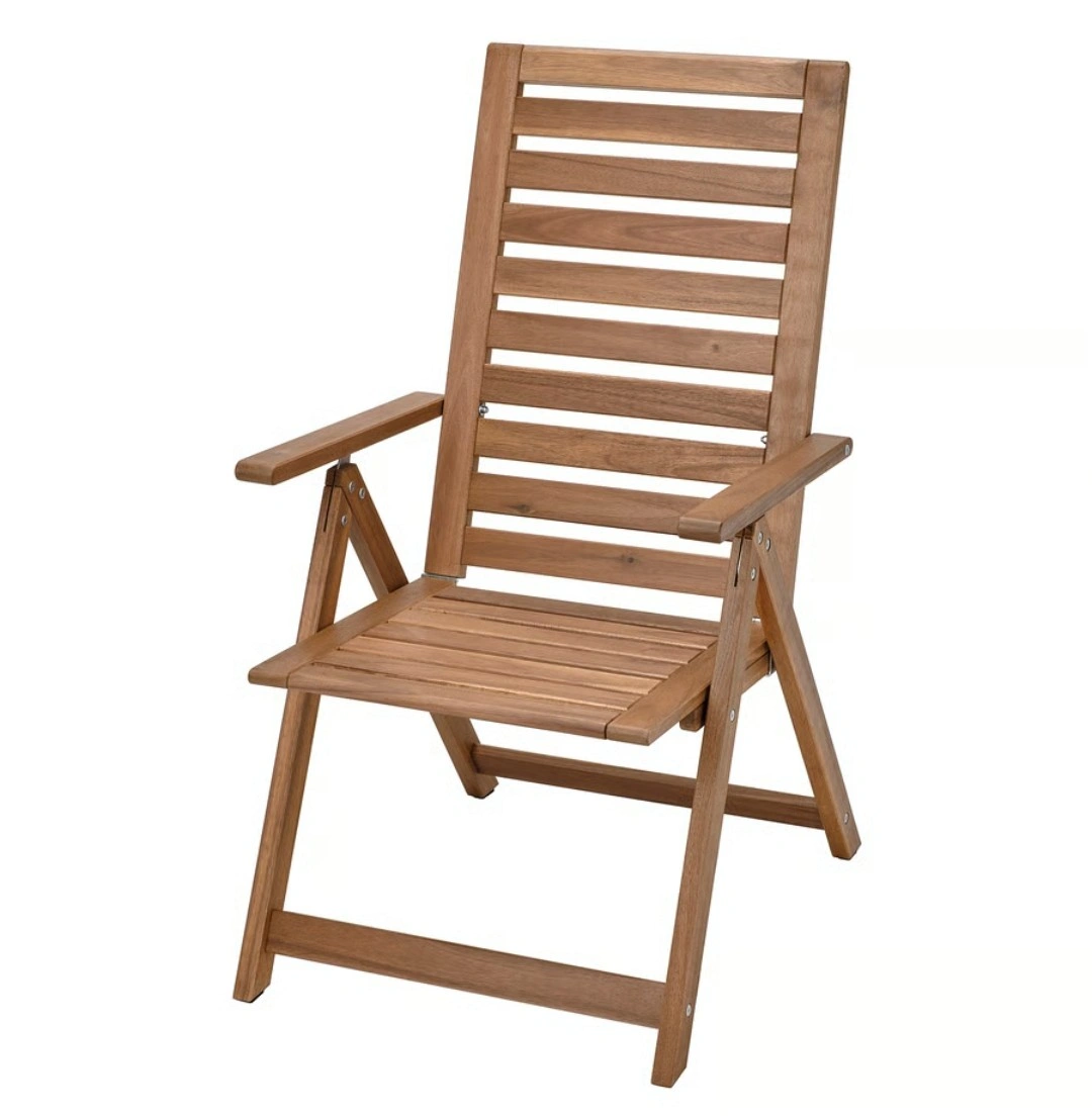 2 Ikea chairs for sale. Reclining chair, outdoor, foldable light brown stained. You can make your chair more comfortable and personal by adding a chair pad in a style you like. Easy to fold up and put away. The furniture is made of acacia, a naturally durable and sturdy hardwood because of the high density of its wood fibers. The furniture has been pre-treated to be better protected against sun, rain, stains and other wear and tear. The back can be adjusted to six different positions. Purchased in 2024. Not used, but has been placed outside for a year. Available Immediately. Pickup only. Price is negotiable. If the ad is stil up, the product is available.