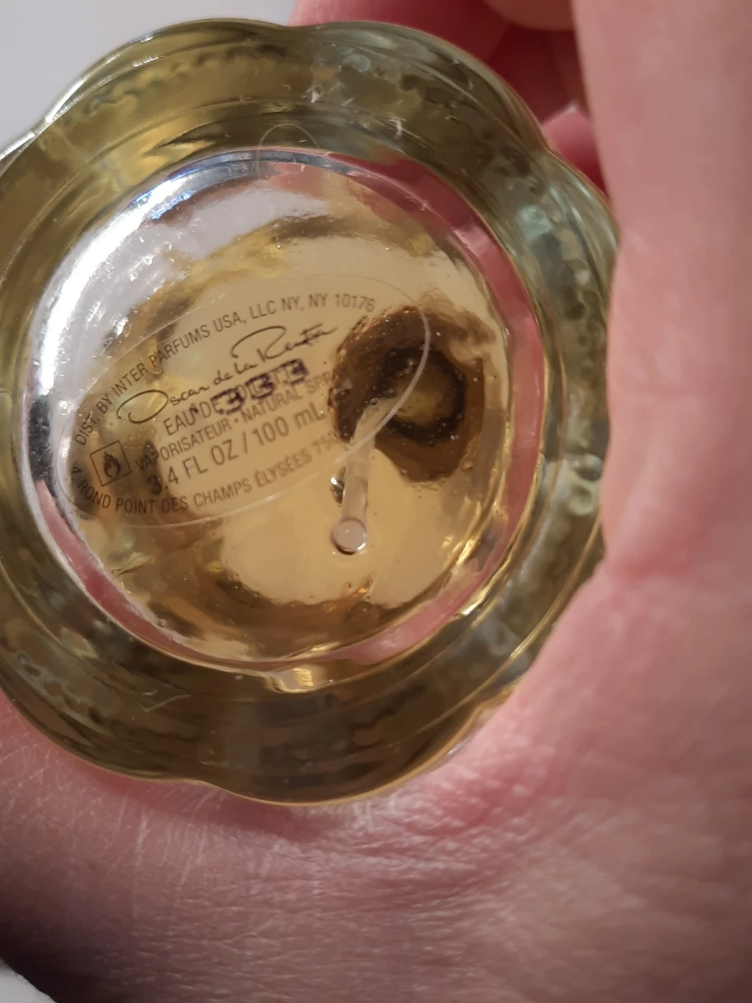 So de la Renta Eau de Parfum spray for women. It's a 3.4 fl oz / 100 mL bottle. This fragrance is from Oscar de la Renta. It comes in a unique fluted glass bottle with beautiful smell,long longevity.pick up in oshawa..missing top cup.