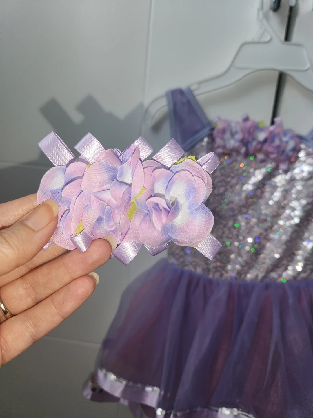 Purple Sequin Dress with Tutu Skirt and Hair Clip(4-5age)