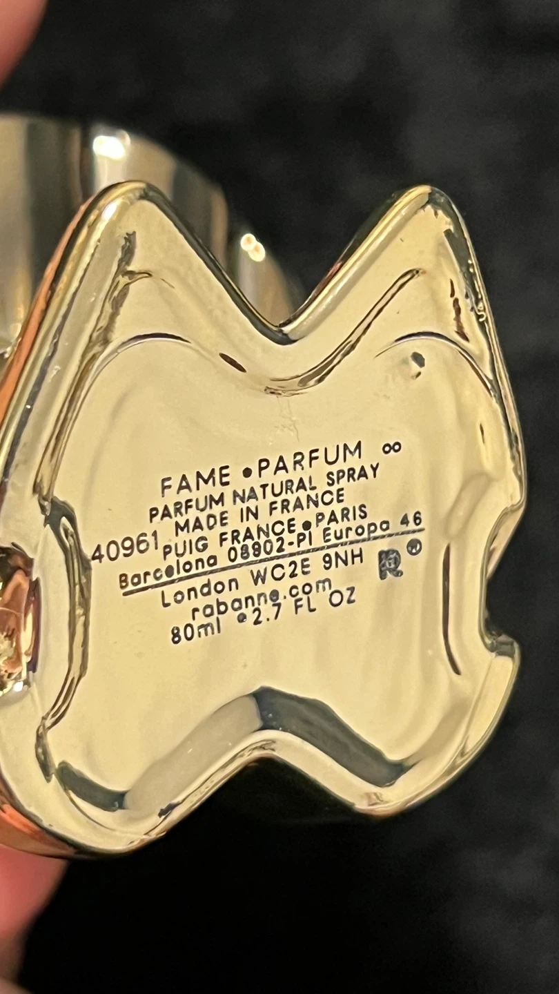 This is a Paco Rabanne Fame Parfum Natural Spray. It contains 80ml (2.7 FL Oz) of fragrance. Made in France.