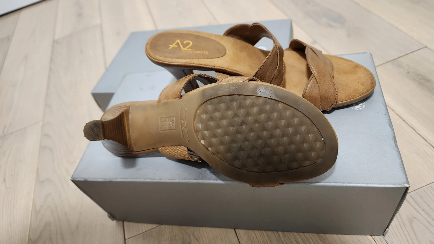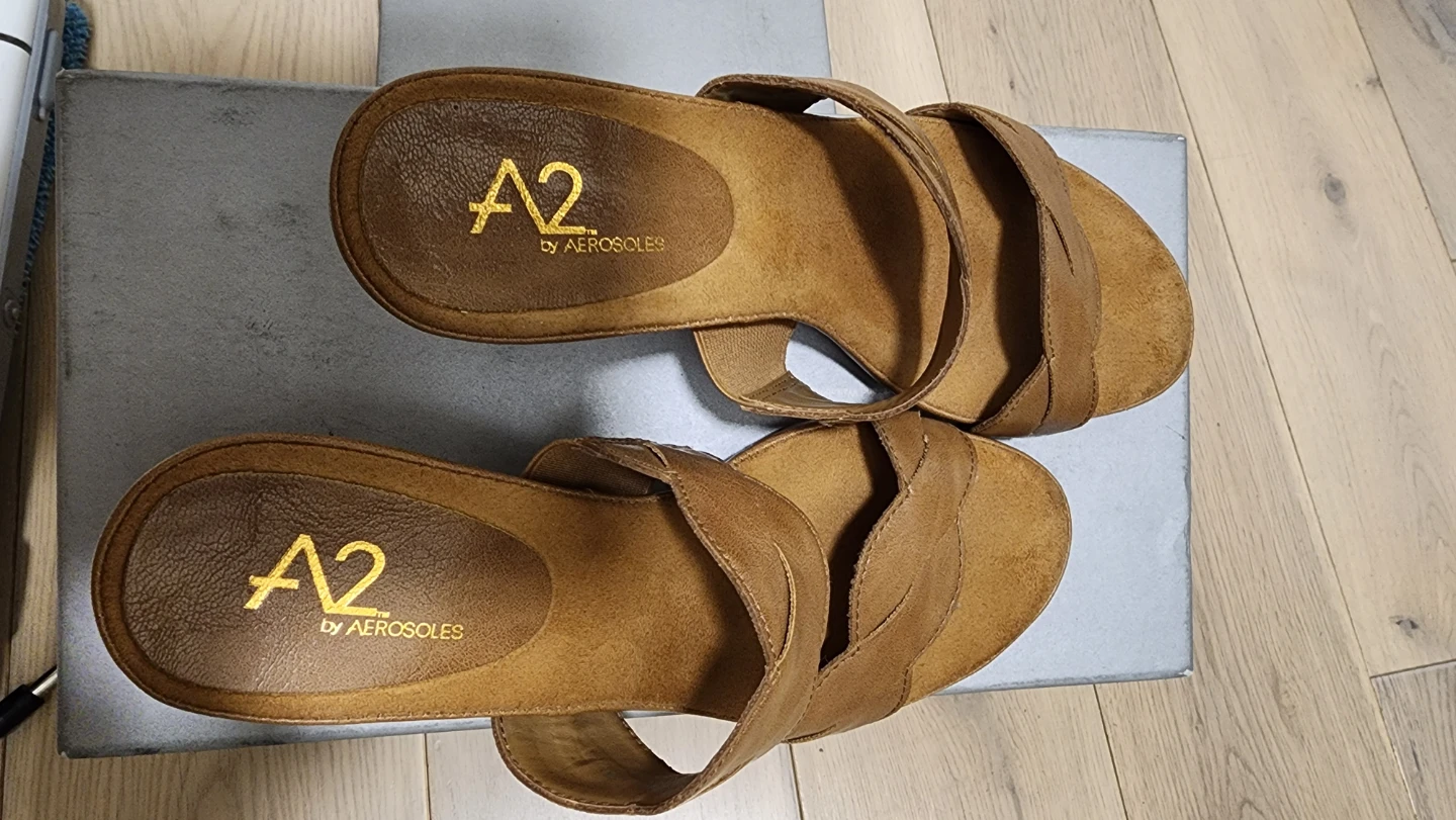 A2 by Aerosoles Women's Brown Slip-On Heeled Sandals Size 6.5