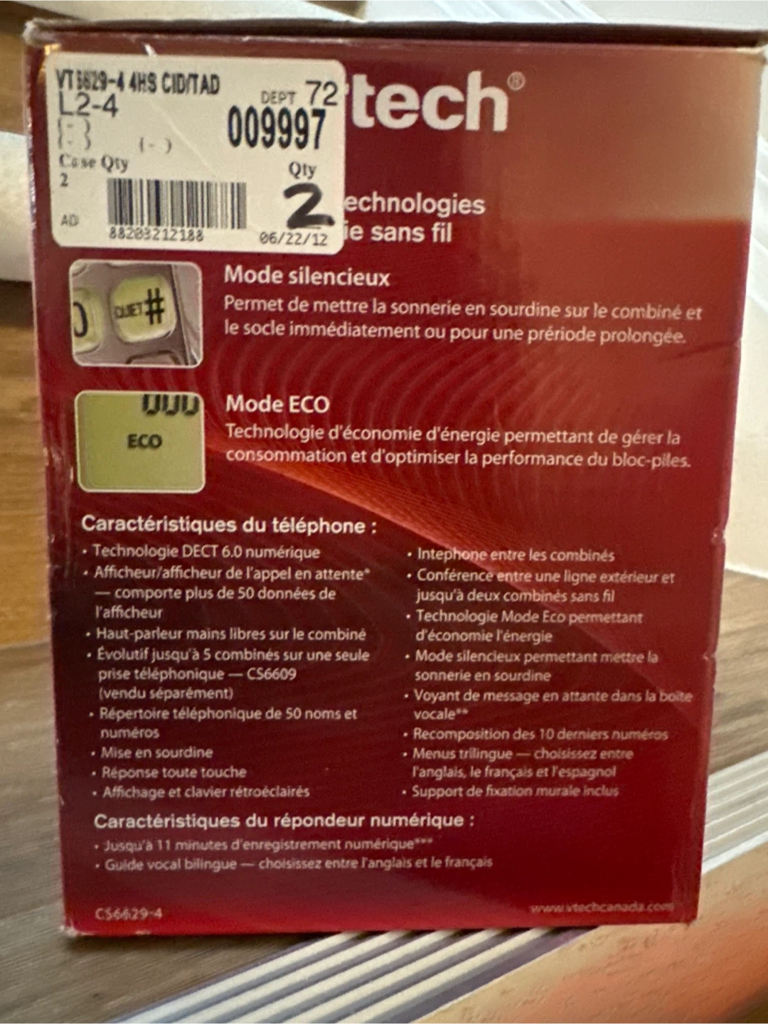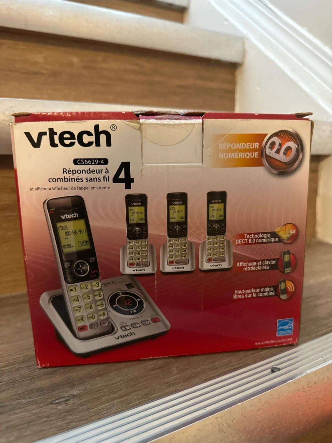 This VTech cordless phone system comes with an answering machine and four handsets. It features DECT 6.0 digital technology and eco mode for energy savings. The phone supports up to 50 numbers in the directory and includes features like silent mode and a 2-way radio function. It has a 11-minute digital answering system.