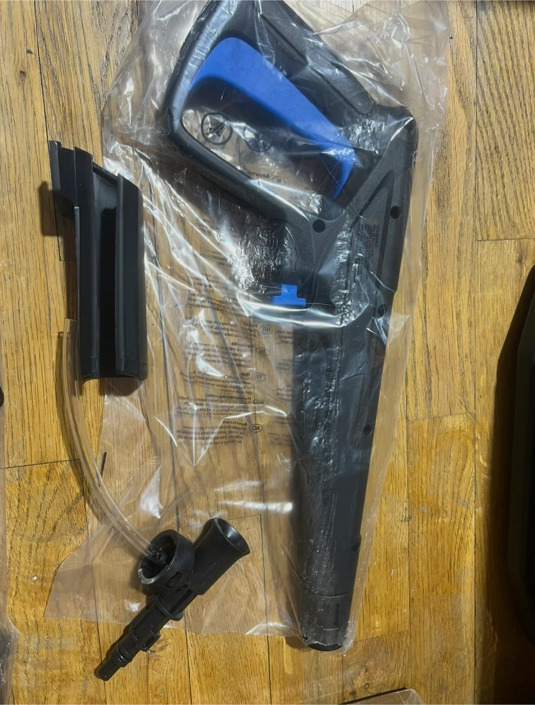 This is a Pecticho high pressure portable washer with 1800W of power. It comes with a spray gun, wand, four quick-connect spray nozzles, wheels for easy movement and extending handle. The unit includes a 25-foot hose and a 16.4-foot power cord. New with original box and instructions.