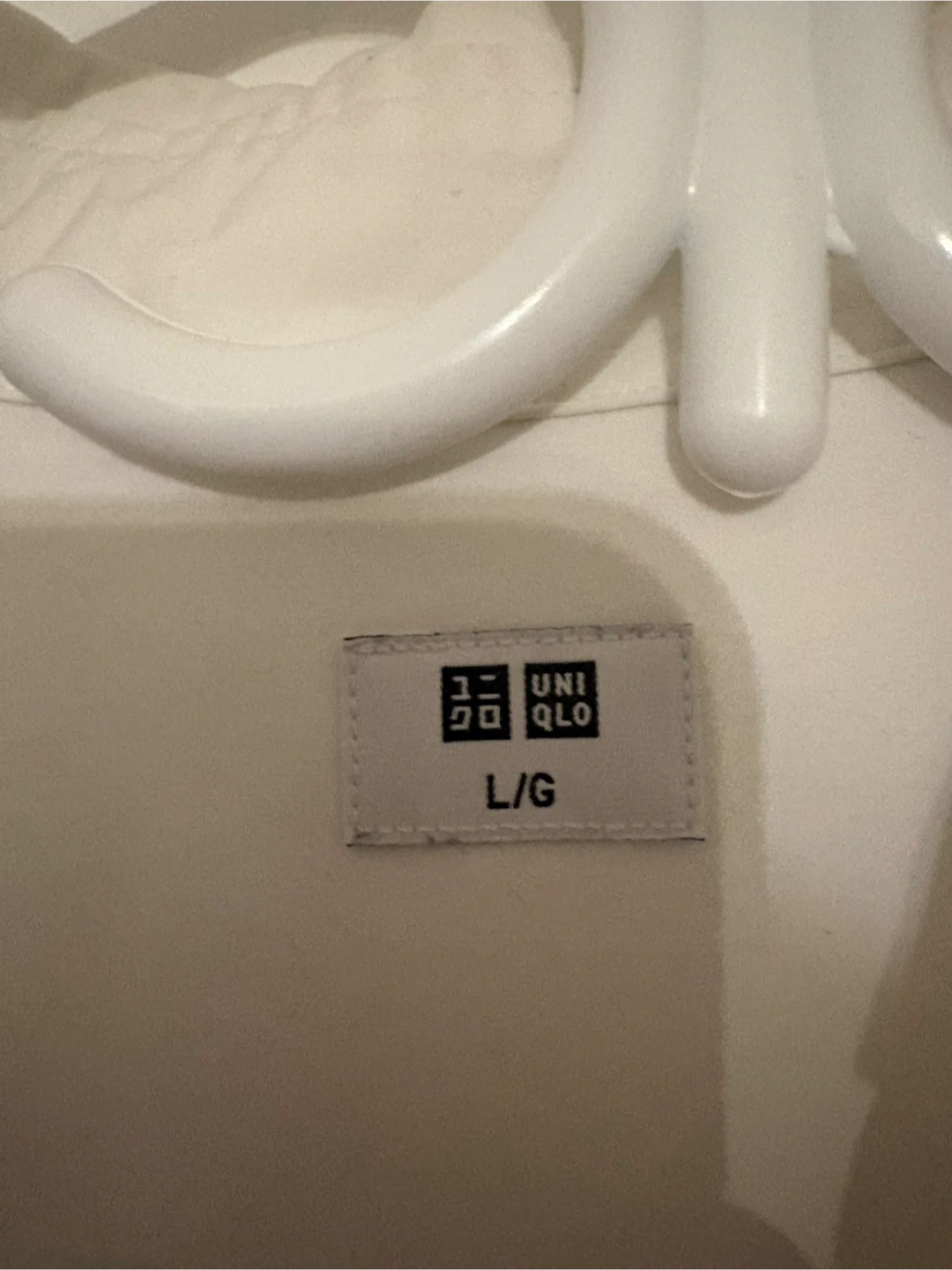 Selling a Uniqlo white button-down shirt in size L. It's in great condition and perfect for a casual or more dressed-up look. The material is comfortable and easy to care for. A versatile piece to add to your wardrobe!