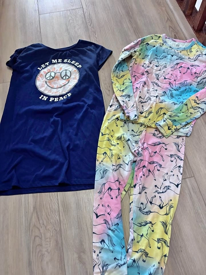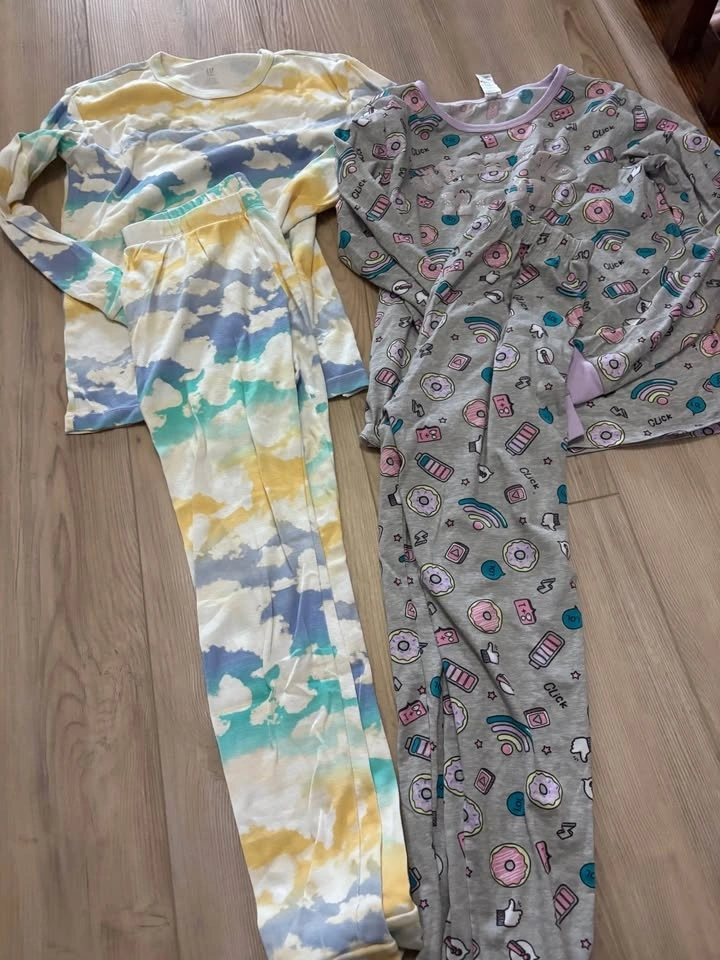 6 pairs of pjs. Some say size 14, some say 10/12 and some are size 12, but all fit like size 10/12. All in vguc. $15 for the lot. Pickup main and Gerrard. Cross posted.