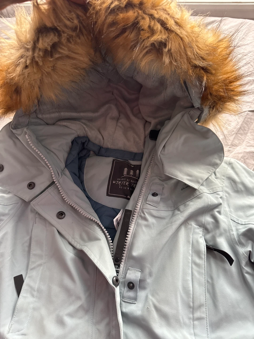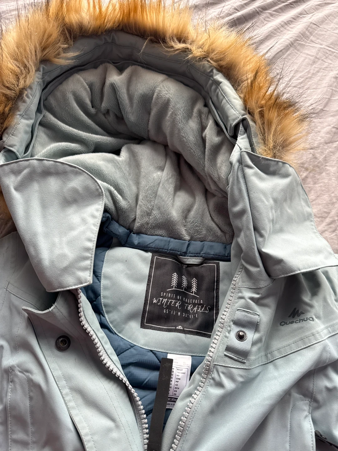 Buy & SellQuechua Winter Trails JacketQuechua Winter Trails Jacket$28Selling a Quechua Winter Trails jacket. It's a light blue colour and has a fur-trimmed hood. Perfect for keeping warm during the colder months!ÉtatLike newSizeSmallBrandQuechuaWHERE TO MEETCobriza CresView MapSELLERverifiedEdnaMount Pleasant GO Station1335 reviews0 chats·0 favorites·12 viewsSEND CHAT TO SELLERHi Edna! I’m interested in your listing.Hi Edna! I’m interested in your listing.Get the Karrot app to chatSign In to chat