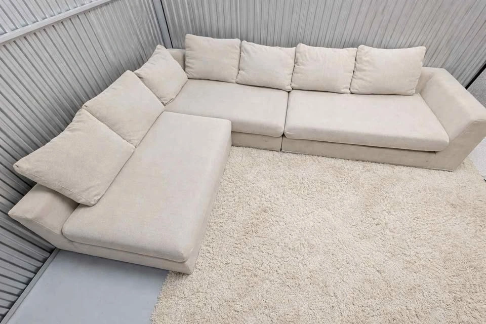Large modern sectional sofa in excellent condition. Measures 10 feet by 7.5 feet and comes in three separate pieces for easy moving and flexible setup. Extremely comfortable with deep seating and a clean, modern look. Upholstery will be freshly washed prior to sale. Perfect for larger living rooms or open concept spaces. Pickup in Sherwood Park.