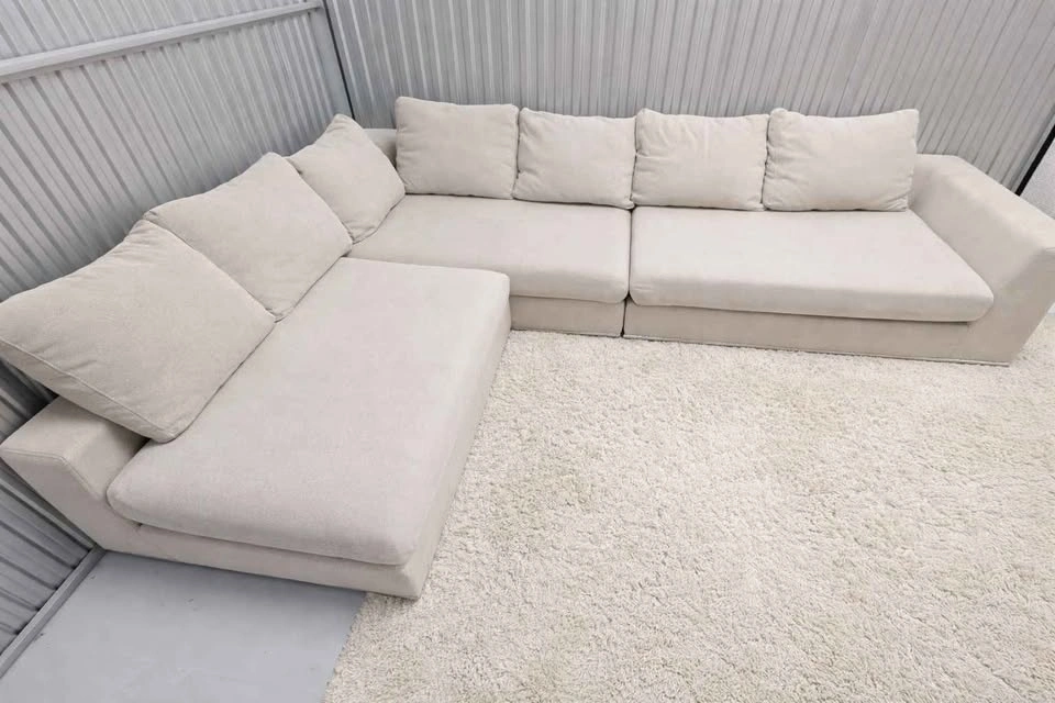 Large modern sectional sofa in excellent condition. Measures 10 feet by 7.5 feet and comes in three separate pieces for easy moving and flexible setup. Extremely comfortable with deep seating and a clean, modern look. Upholstery will be freshly washed prior to sale. Perfect for larger living rooms or open concept spaces. Pickup in Sherwood Park.