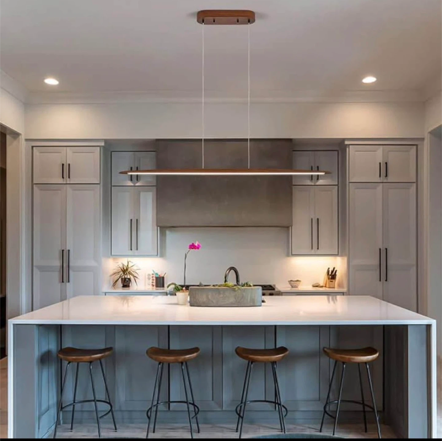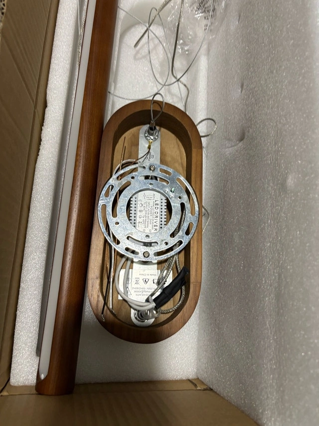 Illuminate your space with this new Wood Integrated LED Linear Pendant Light, featuring walnut color ash wood for a sleek and modern aesthetic. The item is brand new, still in its original packaging, ensuring pristine condition and untouched quality. Specifications: * Type: Integrated LED Pendant Light * Material: Walnut Color Ash Wood * Condition: New. If the ad is up, it's available! I'm pricing this at $180, a fair price for a brand new lighting fixture.