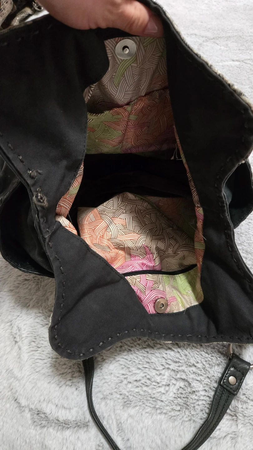 Selling this cute large purse, has lots of storage and its almost a "tote" size. Inside has a cute and fun color combo!