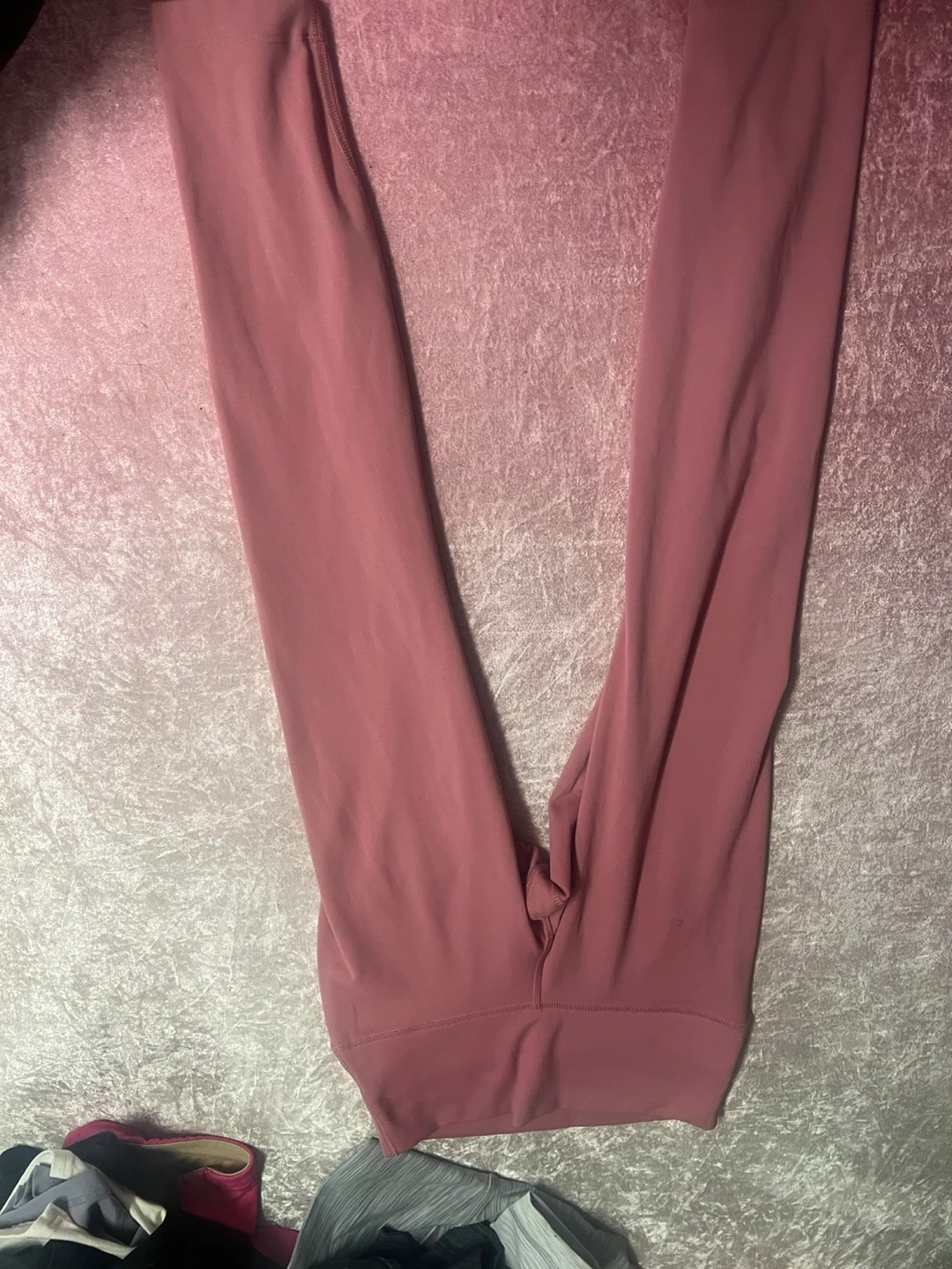 These Nike leggings are a dusty rose colour. Made from a soft, stretchy material, they're designed for comfort during workouts or everyday wear. The waistband sits high for a secure fit.
