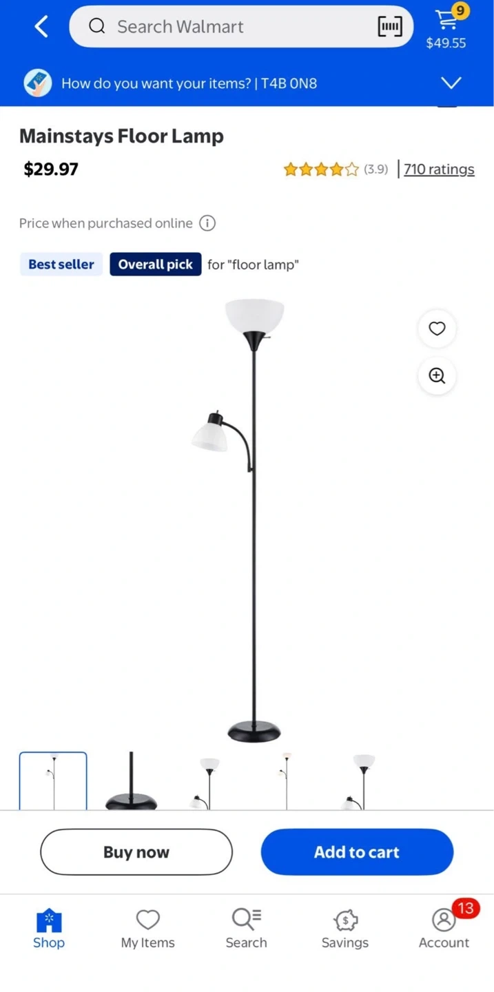 This Mainstays floor lamp features a main uplight and an adjustable reading light. It's black with white shades. Perfect for adding light to any room in your home!