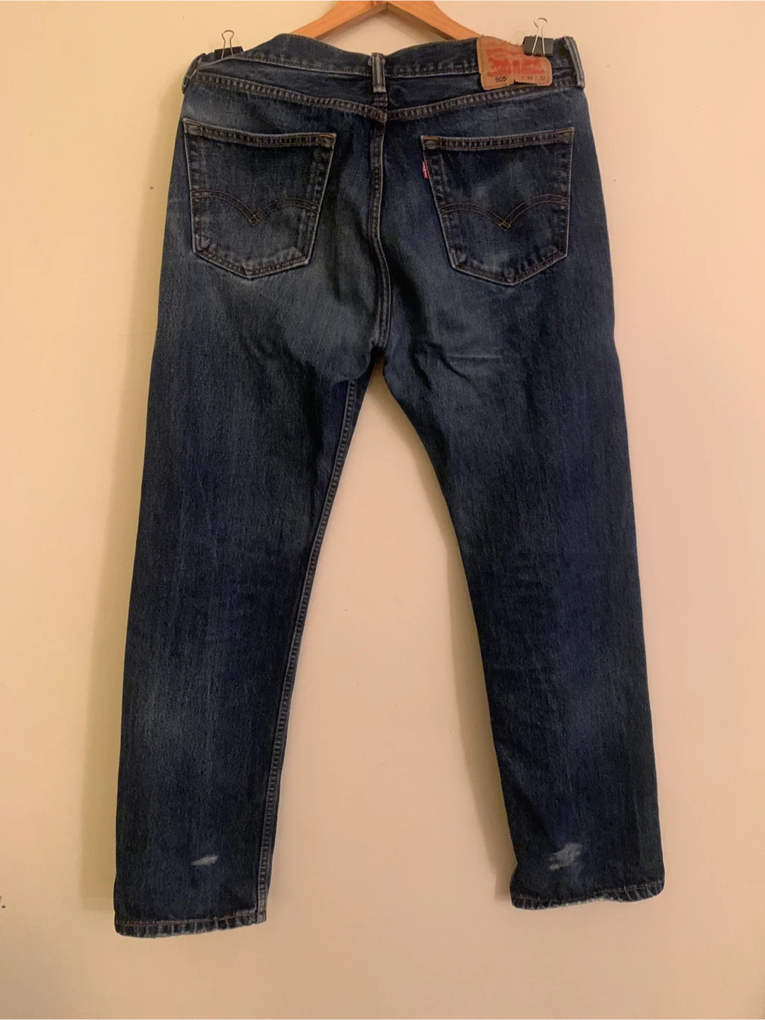 Selling a pair of Levi's 505 jeans. They are in good condition and ready for a new home. The size and color are as shown in the pictures