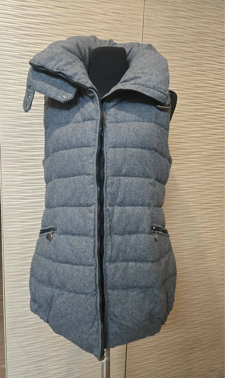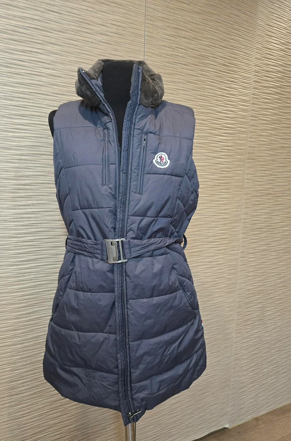 Authentic Moncler puffer vest. Features a stand-up collar and snap button closure. It's lightweight and perfect for layering.