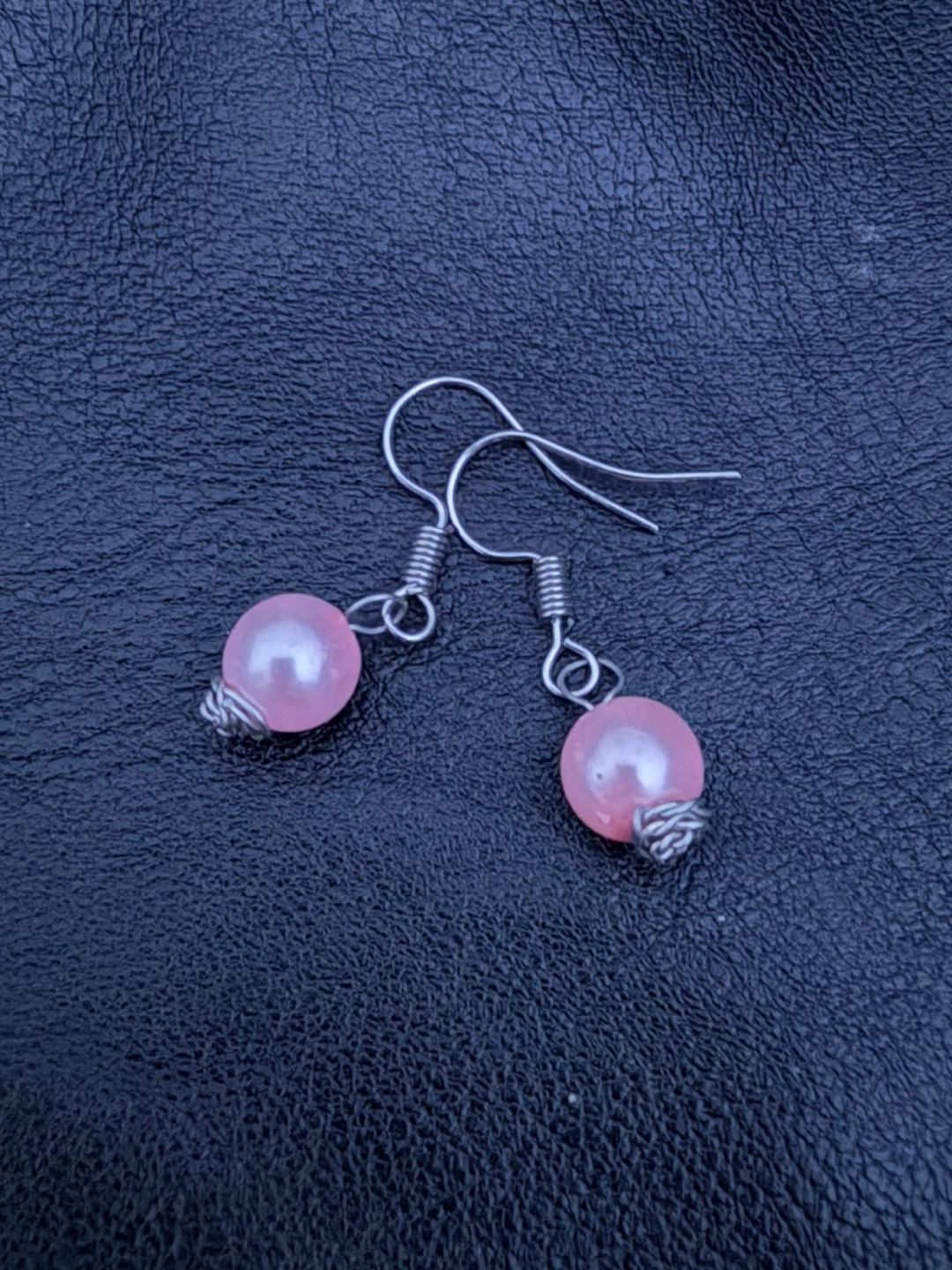 These charming drop earrings feature a single pink pearl bead. They're crafted with silver-toned wire wrapping around the base of the bead. They're lightweight and perfect for everyday wear!