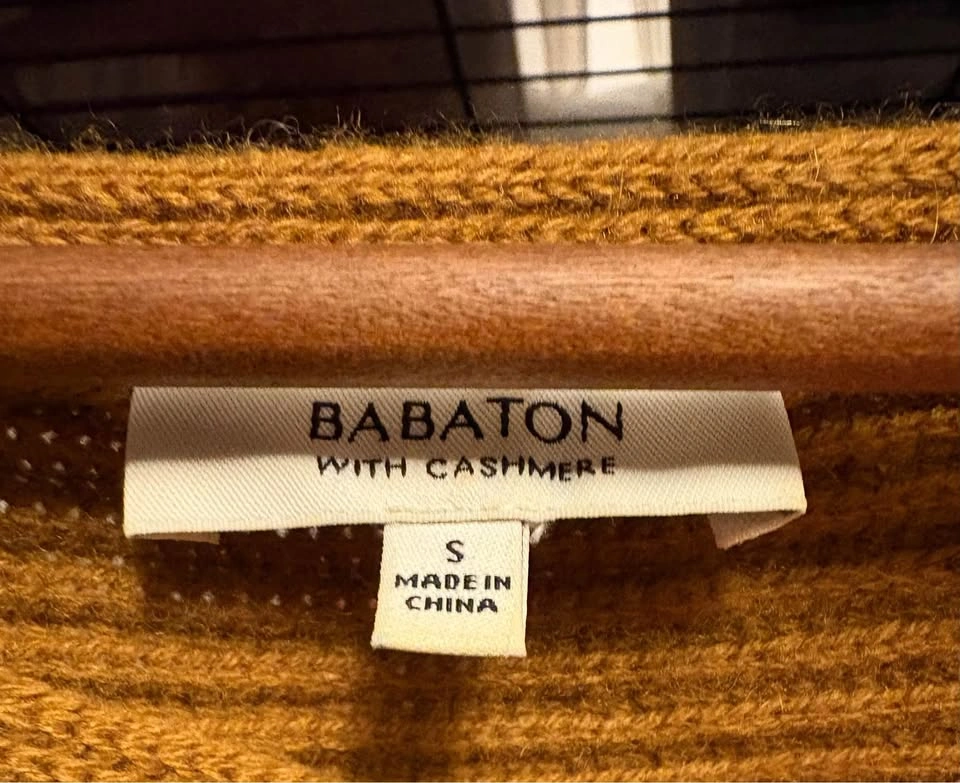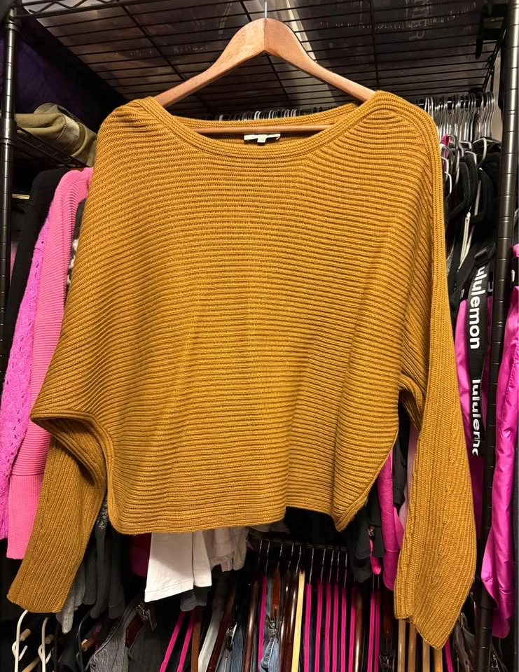 Excellent used condition. No holes, stains, pilling, or other material defects. Colour is a bit darker than in photos, but not by much. Mustard (Dijon, not French’s) yellow/brown colour. Part cashmere. Size small.