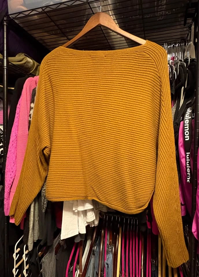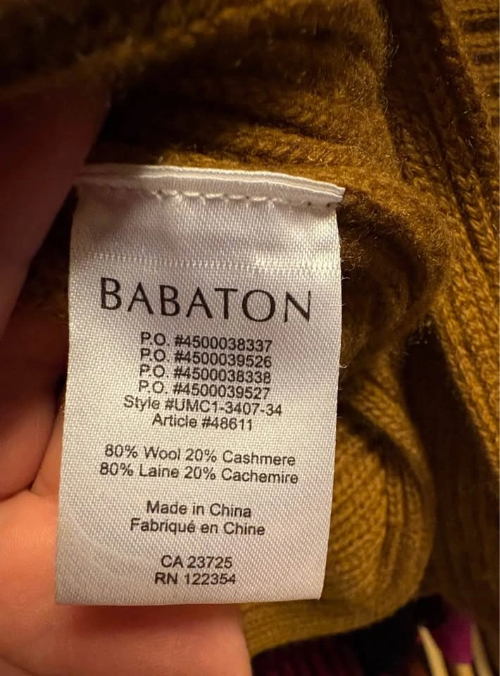 Excellent used condition. No holes, stains, pilling, or other material defects. Colour is a bit darker than in photos, but not by much. Mustard (Dijon, not French’s) yellow/brown colour. Part cashmere. Size small.