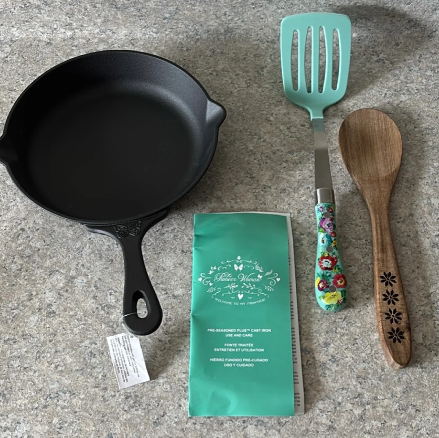🧡The Pioneer Woman Cast Iron Skillet Set with Utensils