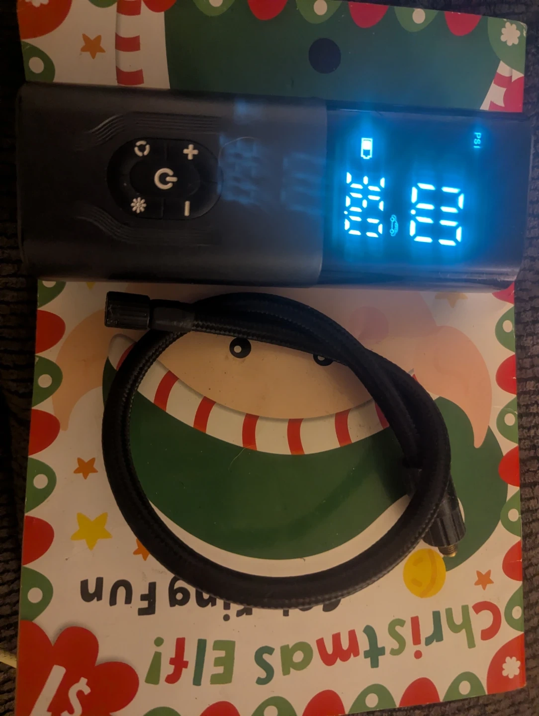 Selling a portable air compressor! It appears to be in great condition and includes the hose as pictured. It has a digital display.