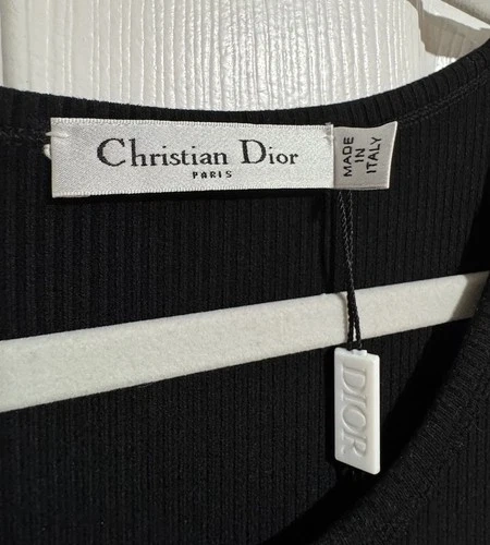 This sleeveless black ribbed dress is the definition of effortless elegance. Clean lines, a flattering straight cut, and subtle Christian Dior Paris embroidery create a timeless piece that speaks quietly — but confidently.