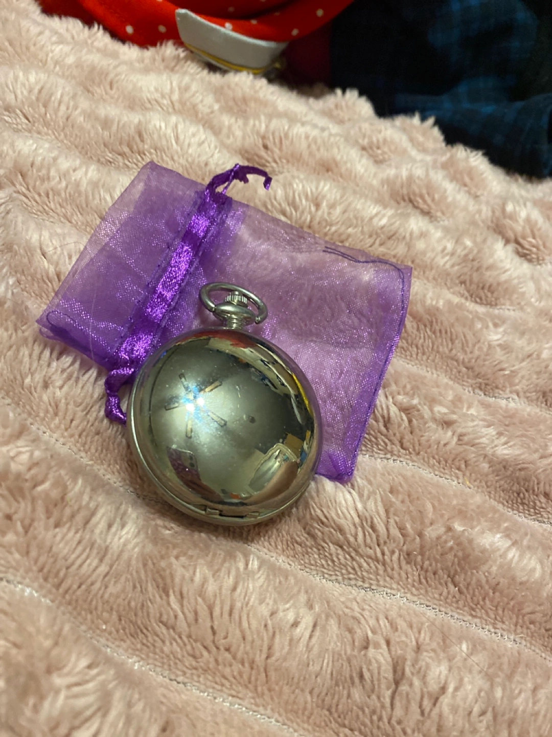 Freecycle !! Giving away , not sure it works was used as a costume accessory piece ,Quartz pocket watch. Silver tone. Comes with a purple organza gift bag. Classic design. Perfect gift or addition to a collection.