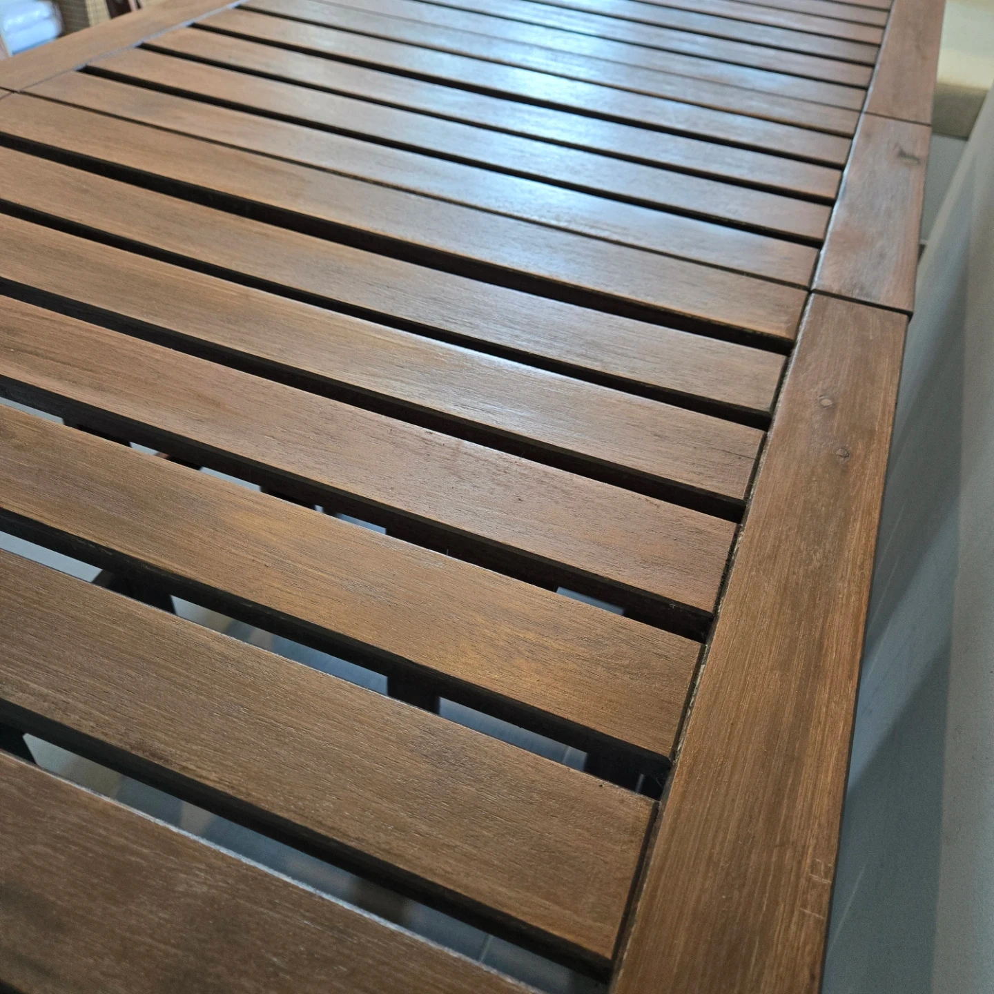 Please note - the original stain is still in great condition so It did not need sanding. However over time, the stain turned slightly darker red. Plesse refer to the photos to see the contrast between the 2 stain color