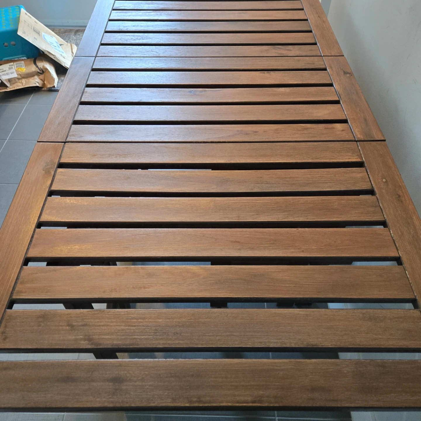 Please note - the original stain is still in great condition so It did not need sanding. However over time, the stain turned slightly darker red. Plesse refer to the photos to see the contrast between the 2 stain color