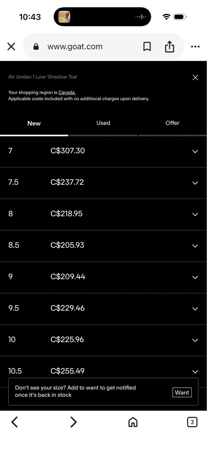 Buy & SellAir Jordan 1 Low Youth 'Shadow Toe' Size 5.5YAir Jordan 1 Low Youth 'Shadow Toe' Size 5.5Y$130Youth Air Jordan 1 Low 'Shadow Toe' sneakers. Size 5.5Y. Colour is black, white and grey.ConditionLike newWHERE TO MEETFinchView MapSELLERroseFinch7514 reviews1 chats·0 favorites·6 viewsSEND CHAT TO SELLERHi rose! I’m interested in your listing.Hi rose! I’m interested in your listing.Get the Karrot app to chatSign In to chat