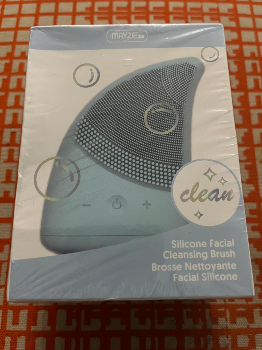 This MAYZE silicone facial cleansing brush is blue and cleanses and massages your face. It features 6 cleansing modes and two types of touchpoints: thin and thick. It's IPX6 waterproof.