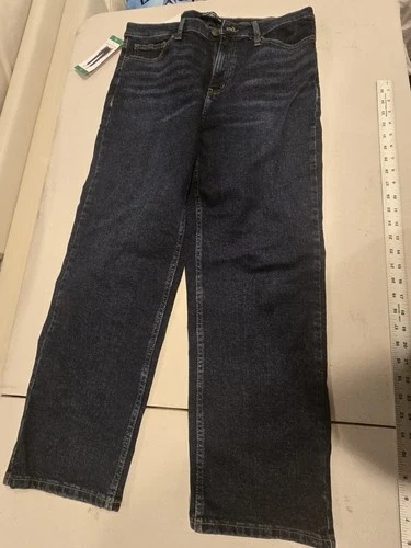 The Calvin Klein Women High Rise Straight Leg Jean in Dark Blue is a stylish and versatile addition to any woman's wardrobe. Crafted from dark wash denim, these jeans feature a flattering high rise and straight leg style, perfect for achieving a classic and timeless look. With a size 12 waist and 27-inch inseam, these jeans are designed for a comfortable fit that is both fashionable and practical. Perfect for everyday wear, these Calvin Klein jeans are a must-have staple for any woman's closet.