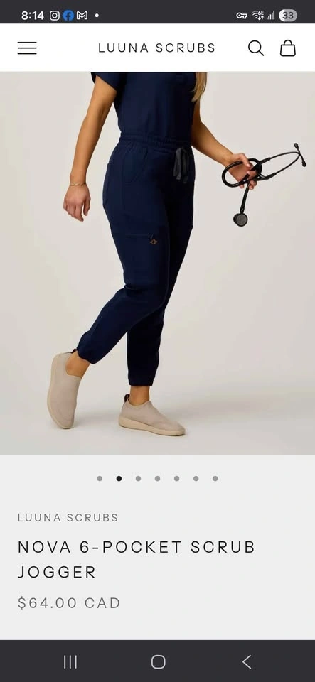 Brand new LUUNA scrub set, never worn, with original tags. Discontinued colour (no longer available on LUUNA website). Jogger-style scrub pants + V-neck scrub top. Pants: size 3XS (R), Top: size XXS. Fit runs small – best for very petite frames or students. Elastic waist with drawstring, jogger cuffs. Multiple functional pockets including zip pocket. Soft, breathable fabric. Modern, flattering design. Selling as the set only. Smoke-free home. Pickup in Winnipeg.